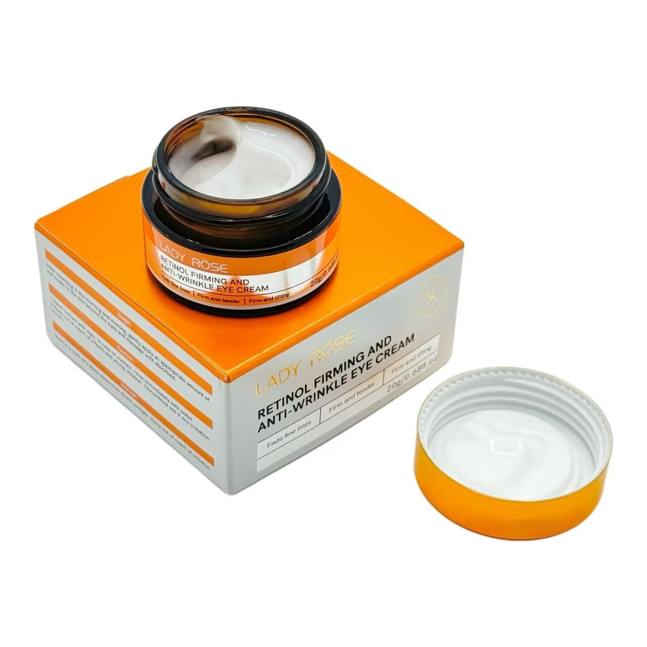 This high-performance anti-aging eye cream is specifically formulated to combat aging and firm the eye area. Enriched with powerful ingredients like retinol, it deeply nourishes the eye area, improving fine lines, dark circles, and puffiness. Whether you're looking to reduce the appearance of fine lines or brighten dull skin, this eye cream provides comprehensive care. Its potent formula helps boost elasticity, restore firmness, and smoothness, leaving your eyes looking refreshed. Product Name: Retinol Firming and Anti-Wrinkle Eye Cream Net Content: 20g 0.68fl.oz Contains: 1 x eye serum Features: 1. The skin around the eyes is often delicate and prone to dullness and dryness. The active ingredients in this under eye puffiness reducer deeply nourish, brightening the eye area and correcting uneven skin tone, leaving the eye area brighter, more translucent, and restoring a healthy radiance. It effectively removes dullness caused by fatigue or aging, leaving eyes looking more vibrant and refreshed. 2. The skin around the eyes is extremely delicate and susceptible to environmental damage and dryness. This depuffing eye cream's highly effective moisturizing ingredients provide all-day moisture to the skin around the eyes, reducing water loss. Its lightweight texture penetrates quickly without leaving a greasy or sticky feeling, leaving your eye area feeling long-lastingly hydrated. Long-term use can effectively improve dryness and roughness around the eyes, restoring softness and smoothness.Easy to Use: Take a pea-sized amount of anti-aging eye cream and gently apply it to the eye area with your ring finger, patting it in. This lightweight, fast-absorbing, non-greasy eye cream is perfect for daily use, morning and night. It helps you easily complete your eye care routine, restoring a firmer, brighter look to the eye area. Widely Suitable: This retinol eye cream is ideal for dry, oily, or sensitive skin. Its gentle, non-irritating formula is safe even for the delicate eye area. For those who regularly use eye makeup or spend time in front of a computer screen, eye repair cream provides the perfect care solution. Lightens Dark Circles: Under eye cream is specifically designed to improve the appearance of dark circles by deeply nourishing and revitalizing the eye area. Its rich repairing ingredients stimulate blood circulation and relieve eye fatigue, while brightening dull skin for a brighter, fresher look. Wrinkle Smoothing: Dark circle eye cream, formulated with powerful anti-aging ingredients, deeply nourishes and repairs the eye area, effectively smoothing fine lines and wrinkles. The deep penetration of retinol helps accelerate cell turnover and stimulate collagen production, improving the firmness and smoothness of the eye area. Lifting and Firming: This eye cream works deeply into the skin's underlying layers to visibly improve firmness around the eyes. Its unique retinol formula helps stimulate collagen production and enhance skin elasticity, effectively reducing sagging around the eyes and restoring firmness and smoothness.