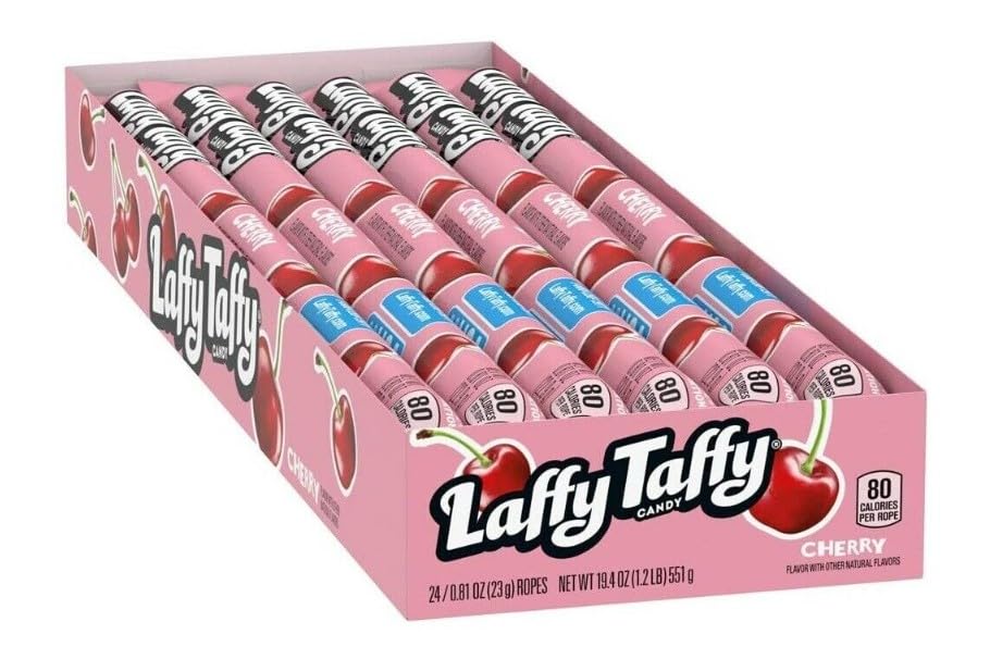 Wonka Laffy Taffy Cordes à mâcher aromatisées aux fruits – Cerise (24 x 22 g)