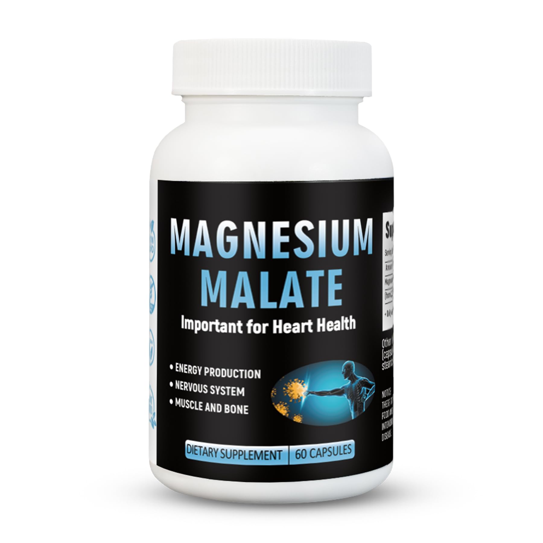 Our magnesium capsules offer a powerful and essential mineral supplement designed to support overall health, particularly in bone, muscle, and nerve function. With 500 mg of magnesium per serving, this high-potency formula provides supplements of your daily recommended value, ensuring optimal support for those who lead active lifestyles or need extra assistance in maintaining healthy muscle and bone structure. Magnesium plays a vital role in energy production, helping regulate muscle contractions, nerve impulses, and protein formation, making it an essential component for daily vitality. These capsules are formulated without artificial flavors, sweeteners, or preservatives, and are gluten-free, making them a clean, high-quality choice for various dietary needs. Whether you're aiming to maintain strong bones, improve muscle function, or enhance overall metabolic health, our magnesium capsules deliver effective results. Crafted with the latest nutritional science in mind and using premium ingredients, you can trust that you're getting a product of unmatched quality and value, ensuring reliable, daily support for your well-being.Supports Nerve and Muscle Function: Magnesium helps regulate nerve signals and muscle contractions, supporting active living and overall well-being. No Artificial Ingredients: Our magnesium capsules are free from artificial flavors, sweeteners, and preservatives. They are also gluten-free, suitable for a variety of dietary needs, and provide clean, high-quality supplementation. Supports Energy Production and Metabolism: Magnesium is involved in energy production and supports a healthy metabolism. It also contributes to normal protein formation, helping maintain vitality. High Potency Formula: Each capsule provides 500 mg of magnesium, offering a convenient way to supplement your daily intake of this essential mineral. Bone and Muscle Support: Magnesium plays a role in maintaining normal bone health and supporting muscle function. It contributes to bone mineralization and supports muscle contractions.