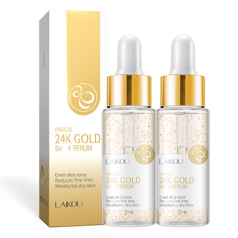 LAIKOU 24K GOLD Snail Serum Face serum Serum for Face for All Skin Types Deep Hydration Daily Moisturizing and Smoothing Care Travel Size 30ml 2pcs
