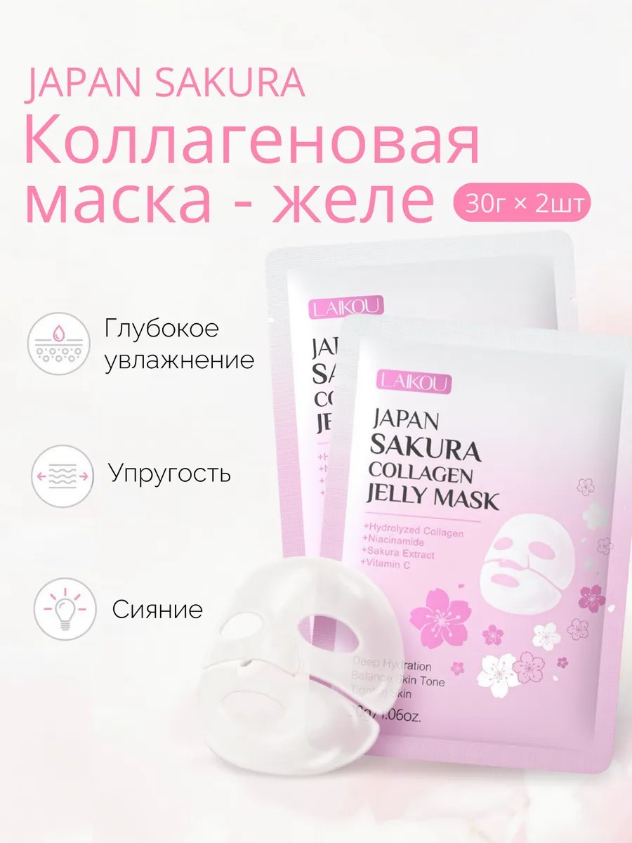 | Полное наименование товара | Коллагеновая маска-желе LAIKOU Japan Sakura Collagen 30 г — увлажнение, упругость и сияние кожи |