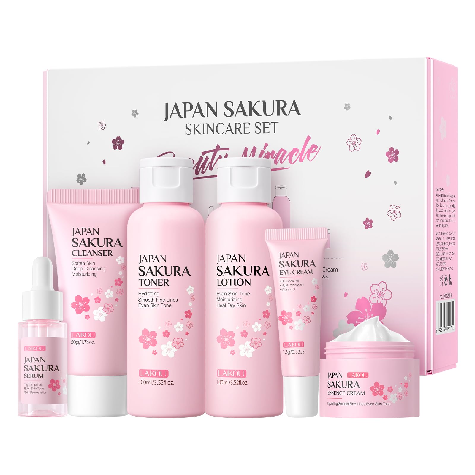 LAIKOU Skin Care Set JAPAN SAKURA Women Beauty Gift Sets Skin Care Kit with Cleanser, Toner, Lotion, Serum, Eye Cream, Face Cream Travel Kit for Women Teen Girls Mom Daughter TSA-friendly Sizes 6pcs