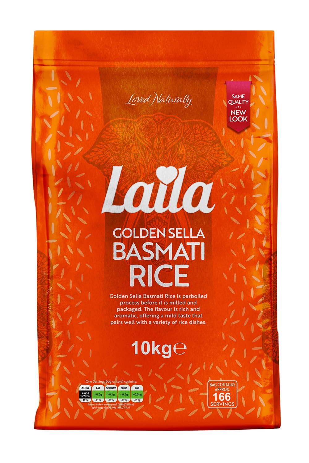 LAILA Golden Sella Basmati Rice. Contents: 1 x 10 kg. Country of origin: India. Storage: Store in a cool, dry place. INGREDIENTS Parboiled Basmati Longgrain White Rice SAFETY WARNING Not applicable See more
