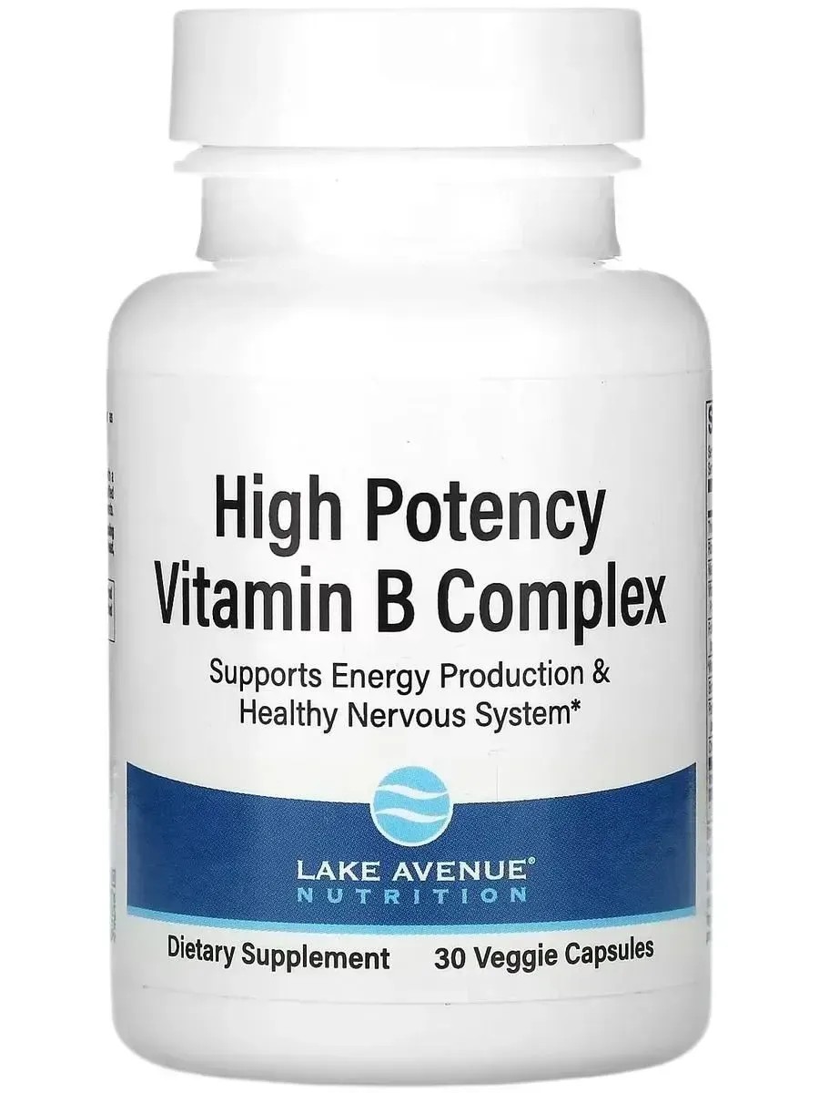 Lake Avenue's B-complex vitamin is a balanced formula that includes all 8 essential B vitamins in optimal dosages. Each package contains 30 capsules, each containing a full spectrum of B vitamins: B1, B2, B3, B5, B6, B7 (biotin), B9 (folic acid), and B12. These vitamins play a key role in energy metabolism, nervous system function, and hematopoiesis. This complex is particularly effective for chronic fatigue, stress, neurological disorders, and skin problems. The formula is designed with the synergistic action of its components in mind, ensuring maximum effectiveness. It is ideal for vegetarians and those with increased physical and mental stress. Taking this complex improves the condition of skin, hair, and nails, and normalizes sleep and emotional well-being. Serving Size: 1 Capsule Servings Per Container: 30 Ingredients: Thiamine (as thiamine HCl) - 110mg Riboflavin (as riboflavin-5-phosphate) - 10mg Niacin (as nicotinic acid and niacinamide) - 140mg Vitamin B6 (as pyridoxine HCl and pyridoxal-5-phosphate) - 10mg Folate (as (6S)-5-methyltetrahydrofolic acid, glucosamine salt) - 670mcg DFE Vitamin B12 (as methylcobalamin) - 400mcg Biotin (as d-biotin) - 500mcg Pantothenic acid (as d-calcium pantothenate) - 110mg Choline (as choline citrate) - 28mg Inositol - 100 mg Other Ingredients: Modified Cellulose (Vegetable Hypromellose Capsule), Dicalcium Phosphate, Ascorbyl Palmitate, Microcrystalline Cellulose, and Silicon Dioxide (Silica). Does Not Contain: Milk, Eggs, Fish, Shellfish, Tree Nuts, Peanuts, Wheat, Soy, Sesame, or Gluten.