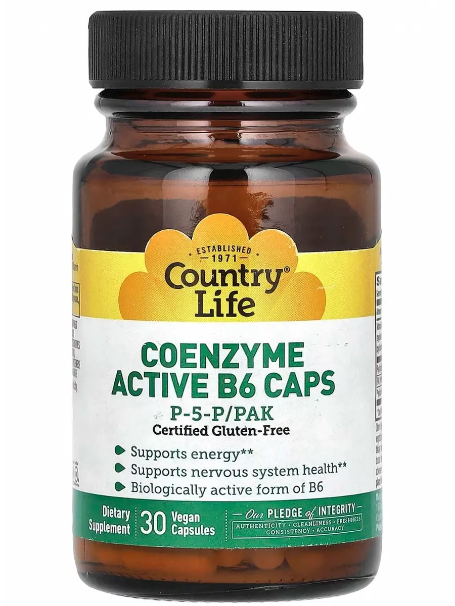 Country Life Active B-6 Capsules - 30 Capsules Metabolism Support: Pyridoxal-5-phosphate plays a key role in the metabolism of amino acids, carbohydrates and lipids, facilitating the efficient conversion of food into energy.