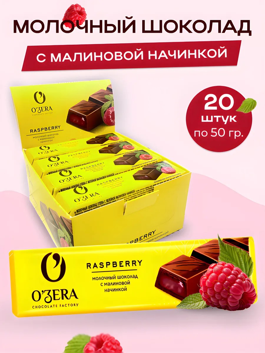 Шоколадный батончик с желейной начинкой, обогащенной натуральным малиновым соком. Лакомство из настоящего молочного шоколада O'Zera Extra milk, в его составе какао из отборных какао-бобов и цельное сухое молоко. Желе приготовлено на основе натурального сока, что делает его вкус максимально насыщенным и натуральным. Шоколад O'Zera с желейной начинкой – отличный вариант для вкусного и полезного перекуса в любой ситуации: на занятиях, в офисе, на прогулке или в дороге.