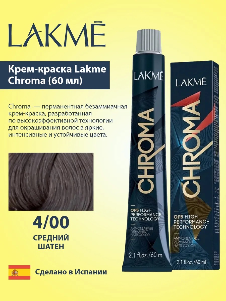 LAKME Крем-краска для волос Chroma 4/00 Средний шатен, 60 мл