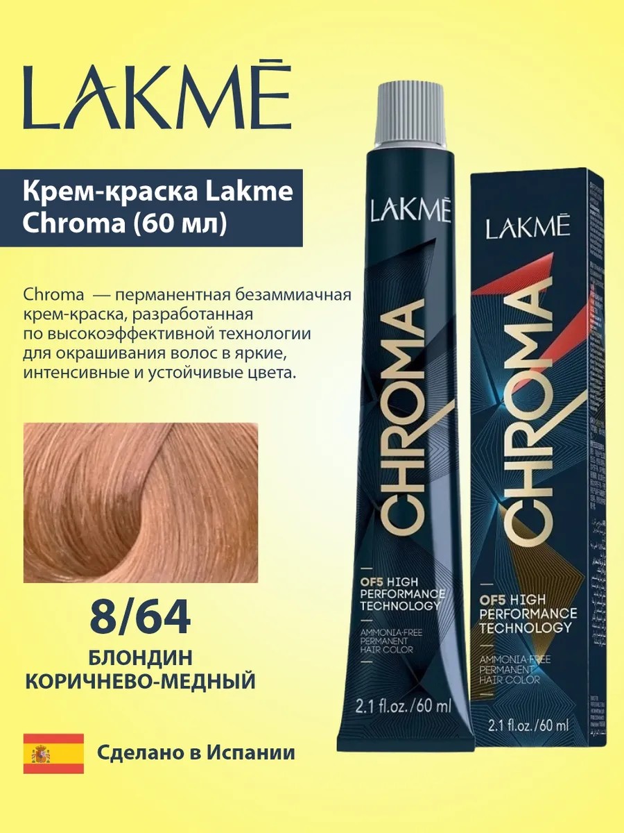 LAKME Крем-краска Chroma 8/64 Блондин коричнево-медный, 60 мл