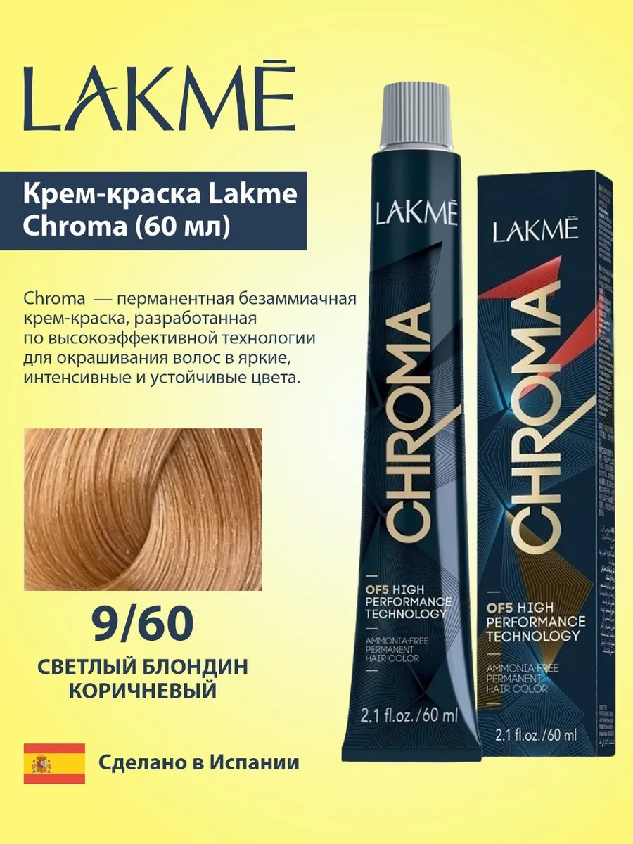 LAKME Крем-краска Chroma 9/60 Светлый блондин коричневый, 60 мл