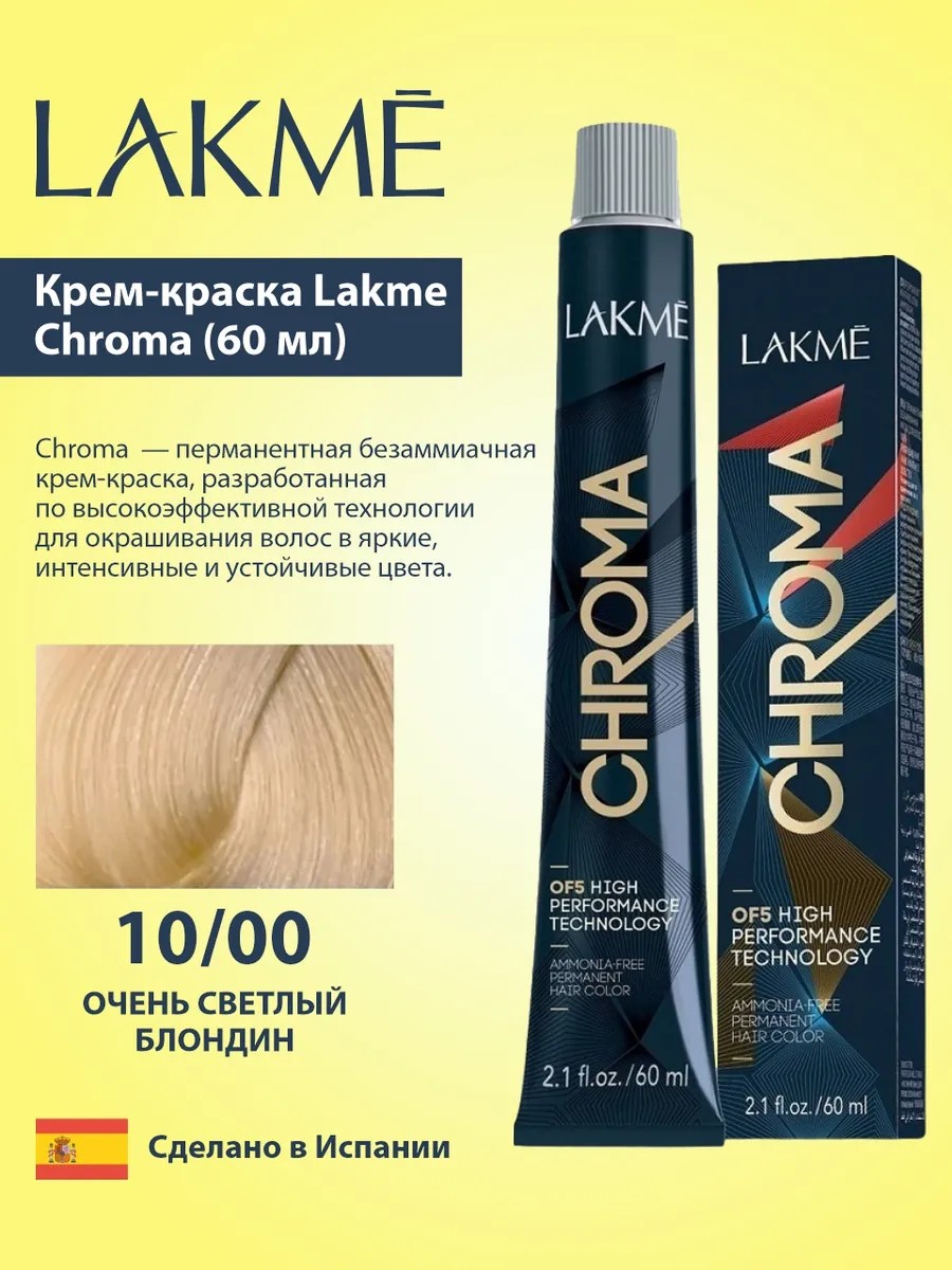 Lakme крем-краска для волос Chroma 10/00 Очень светлый блондин, 60 мл