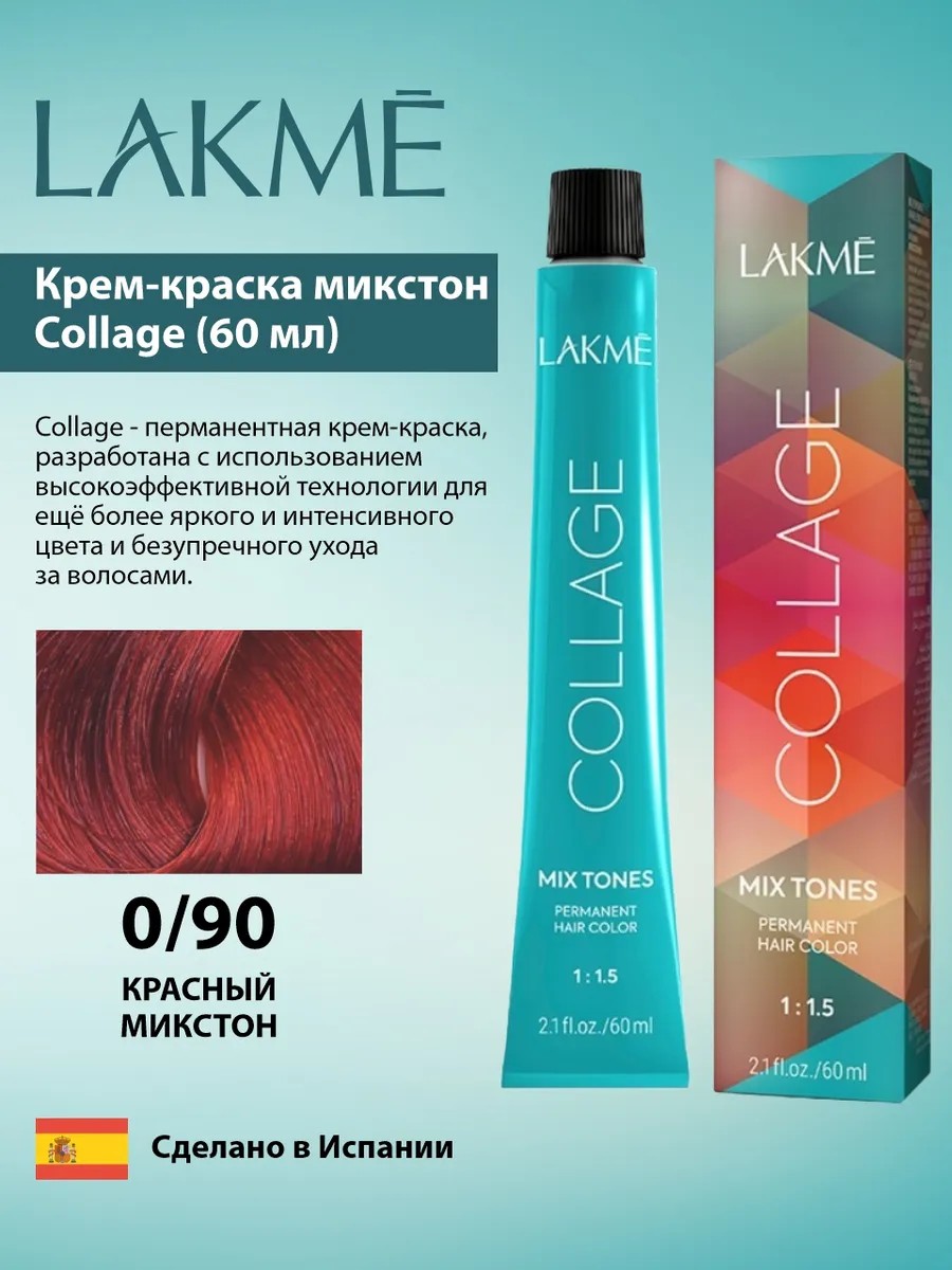LAKME Крем-краска Collage 0/90 Красный микстон, 60 мл