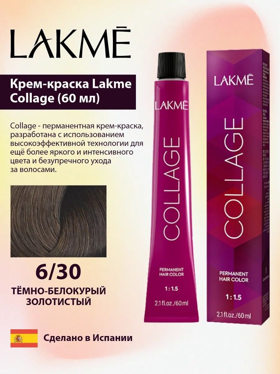 LAKME Крем-краска Collage 6/30 Темно-белокурый золотистый, 60 мл