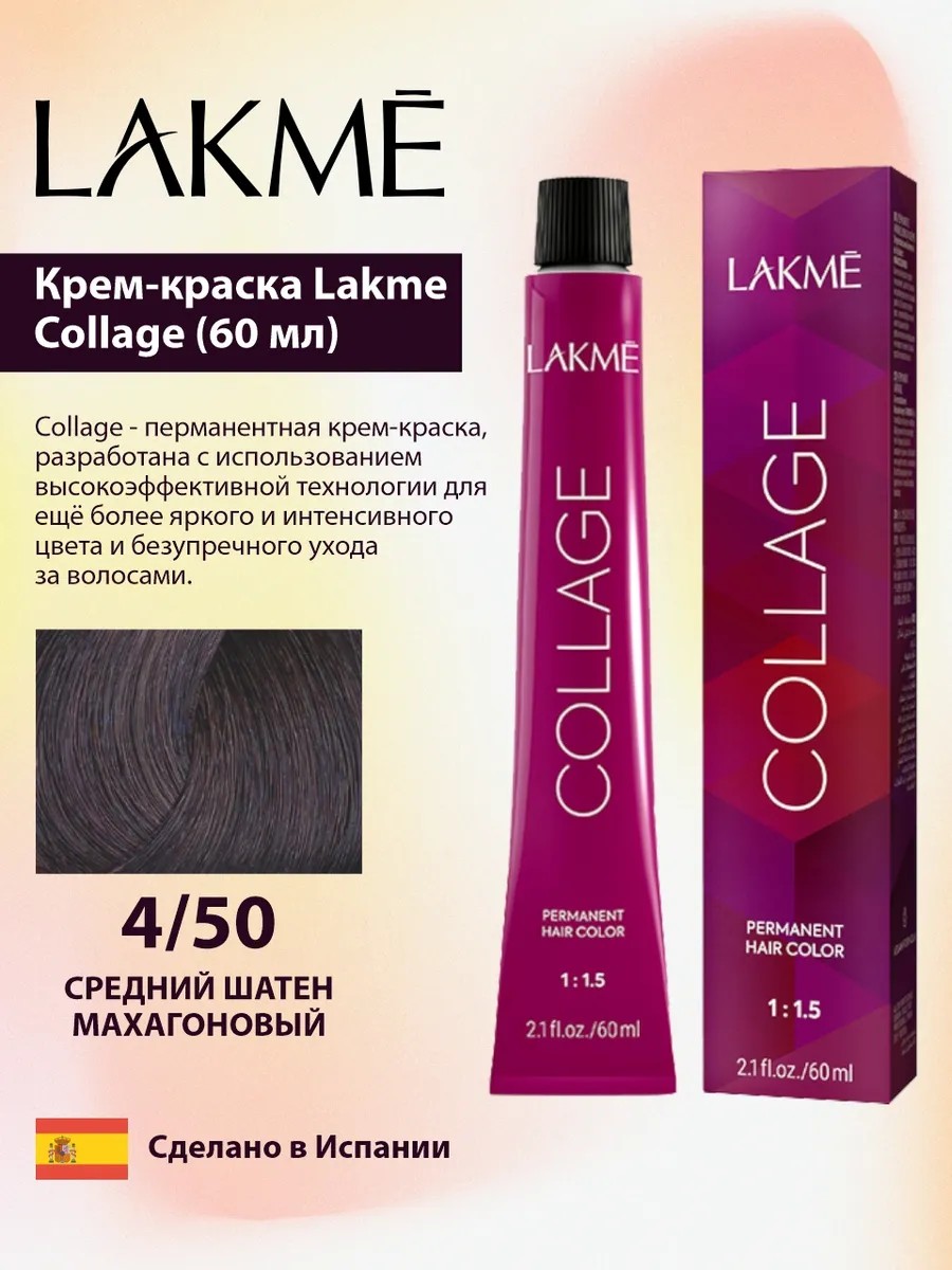 LAKME Крем-краска Collage 4/50 Средний шатен махагоновый, 60 мл