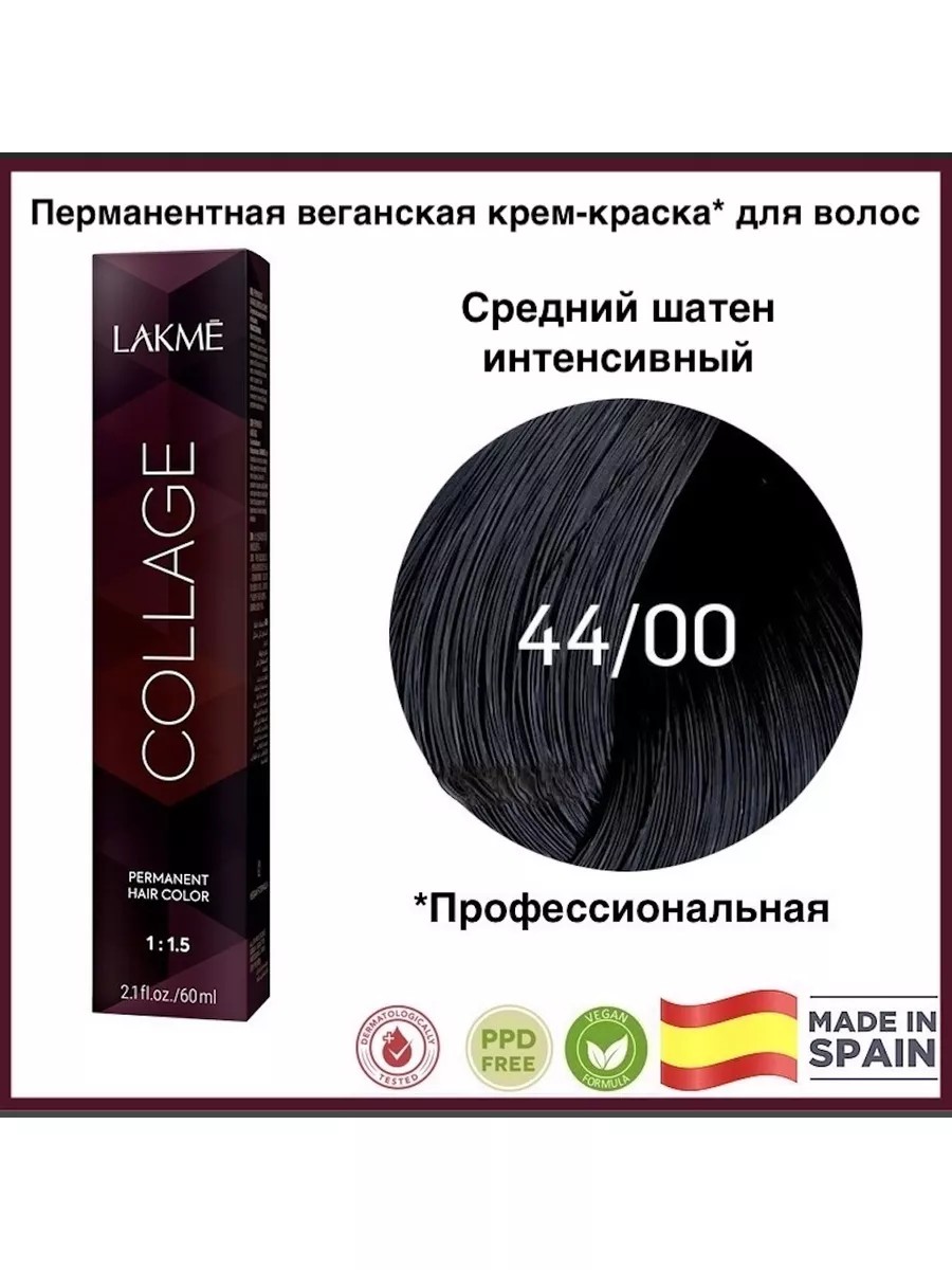 LAKME Краска для волос COLLAGE 44/00 стойкая профессиональная 60мл