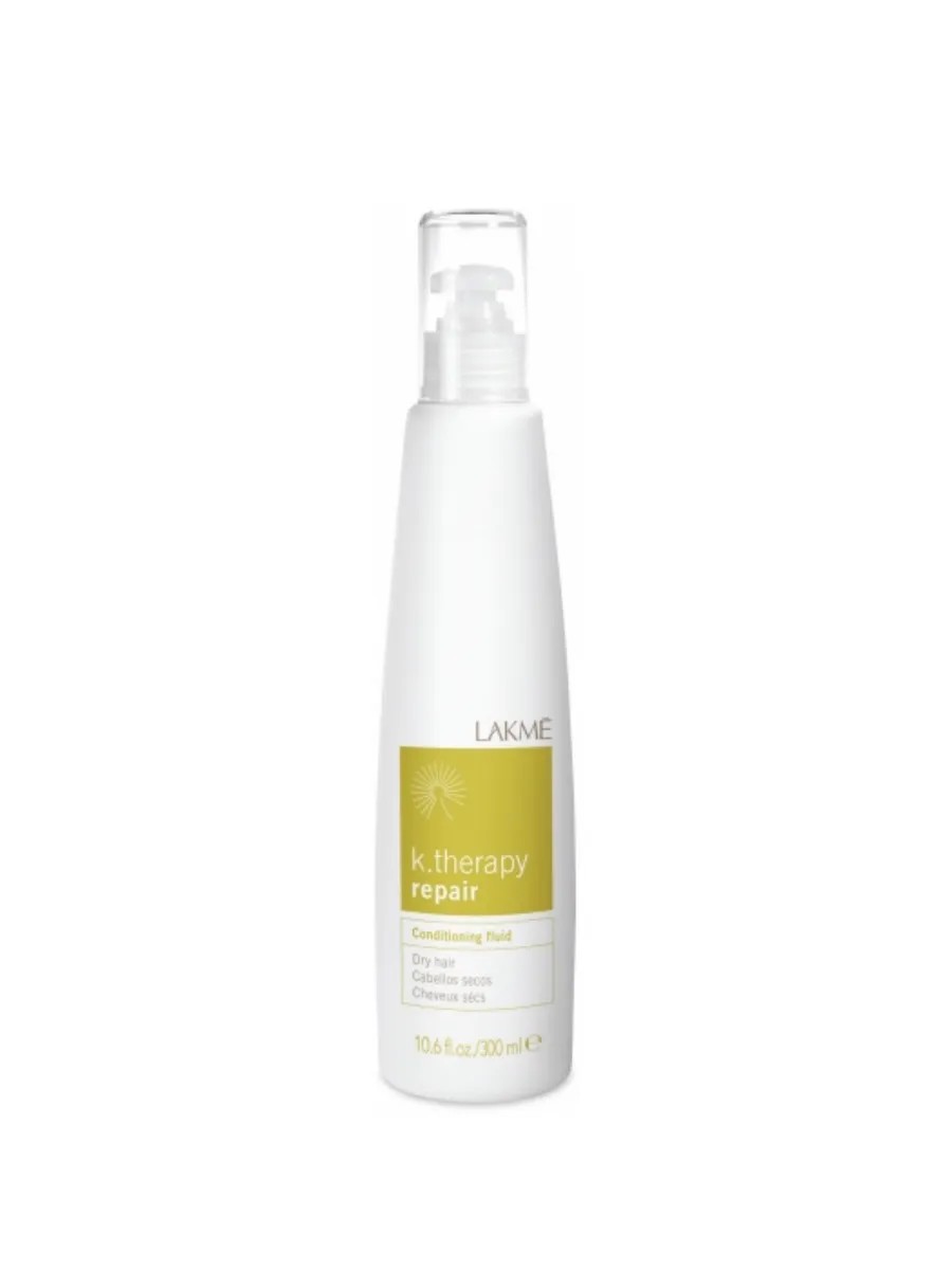 K.therapy Repair Lakme Restorative Fluid for Dry Hair is an excellent product for nourishing hair and adding silkiness and shine. A professional product from Spain. Hair condition: dry, porous, and damaged hair. Contains a water-oil complex that creates a protective hydrolipidic layer on the surface of porous and brittle hair. Conditions and softens dry, porous, and damaged hair. The fluid acts as a balm - it conditions and deeply moisturizes. It fills the hair with nutrients, restoring its natural condition. The product has been dermatologically tested. Directions: Apply to washed hair with Revitalizig shampoo and towel-dried hair, avoiding contact with the scalp. Distribute over the entire length of the hair with your fingers or a comb. Rinse thoroughly. Volume: 300 ml