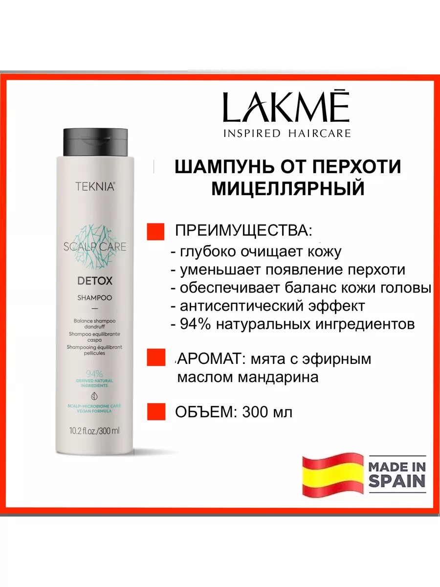Lakme Шампунь для волос от перхоти мицеллярный TEKNIA DETOX 300 мл