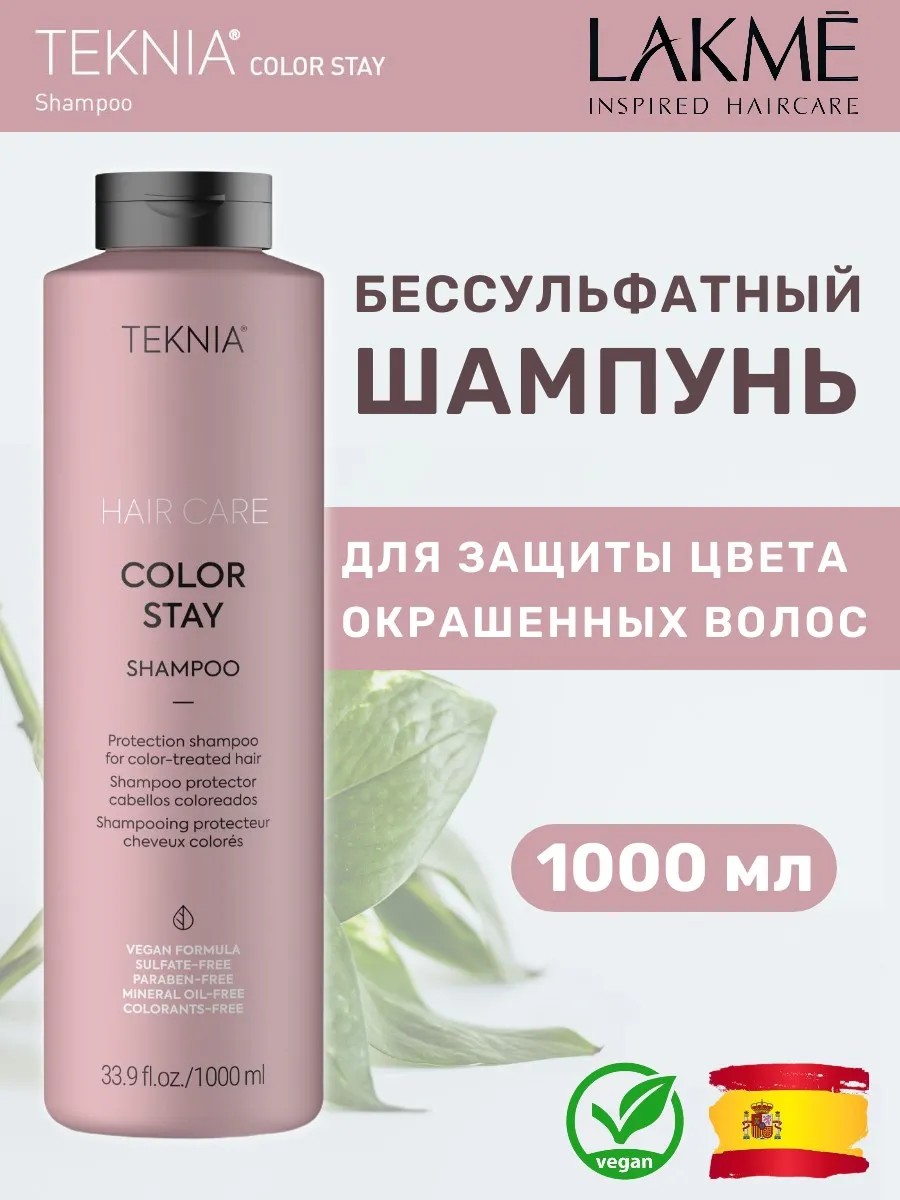 Шампунь Teknia Color Stay от Lakme не содержит сульфаты и мягко очищает волосы. Бессульфатный шампунь для окрашенных волос продлевает стойкость цвета и замедляет потерю пигментов. Применение шампуня рекомендуется после окрашивания или тонирования волос.