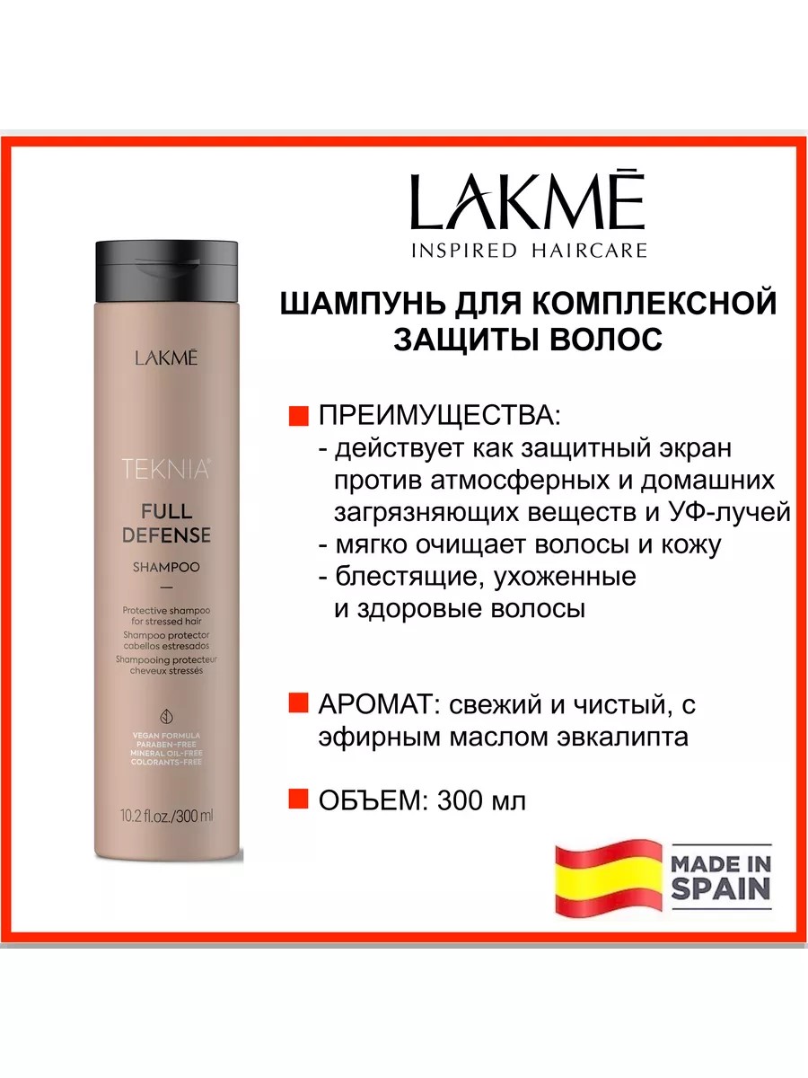 LAKMÉ TEKNIA FULL DEFENSE Шампунь защитный, 300мл. Лакме.