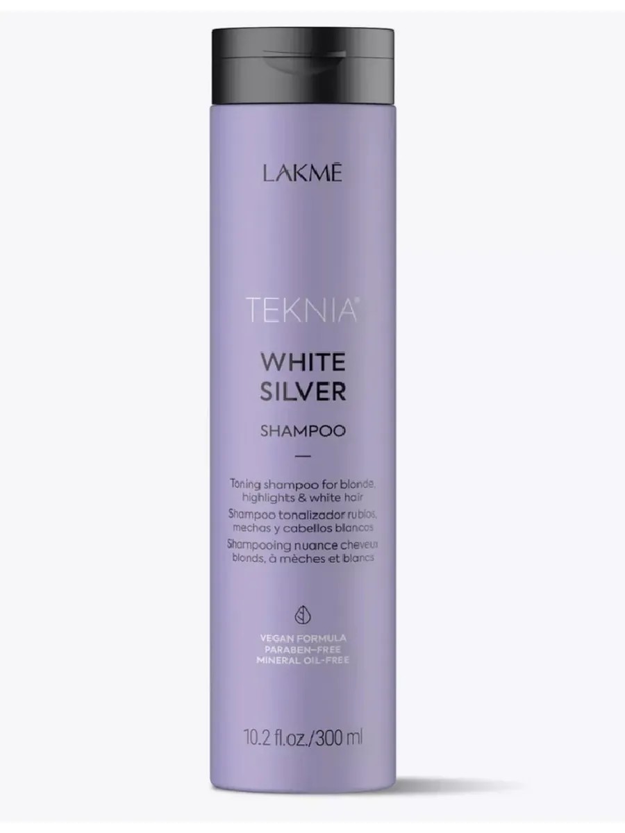 White Silver is a professional toning shampoo for neutralizing and removing unwanted yellow tones on colored, light-colored, highlighted, and gray hair. It leaves hair color crystal clear, pearlescent, and without yellowness. Lakme WHITE SILVER shampoo for blondes perfectly cleanses and removes yellow tones on gray and light-colored hair. It neutralizes unwanted warm tones. The formula with organic white lotus flower extract provides softness, hydration, purity of color, and natural shine. Benefits: Removes yellow tones on gray and light-colored hair and prevents the appearance of unwanted warm tones. Moisturizes, restoring the purity of color and natural shine. Scent: Green, with lemon essential oil. Recommended for use with the White Silver mask. Directions: Apply to damp hair, lather, and rinse thoroughly. Wearing gloves is recommended.