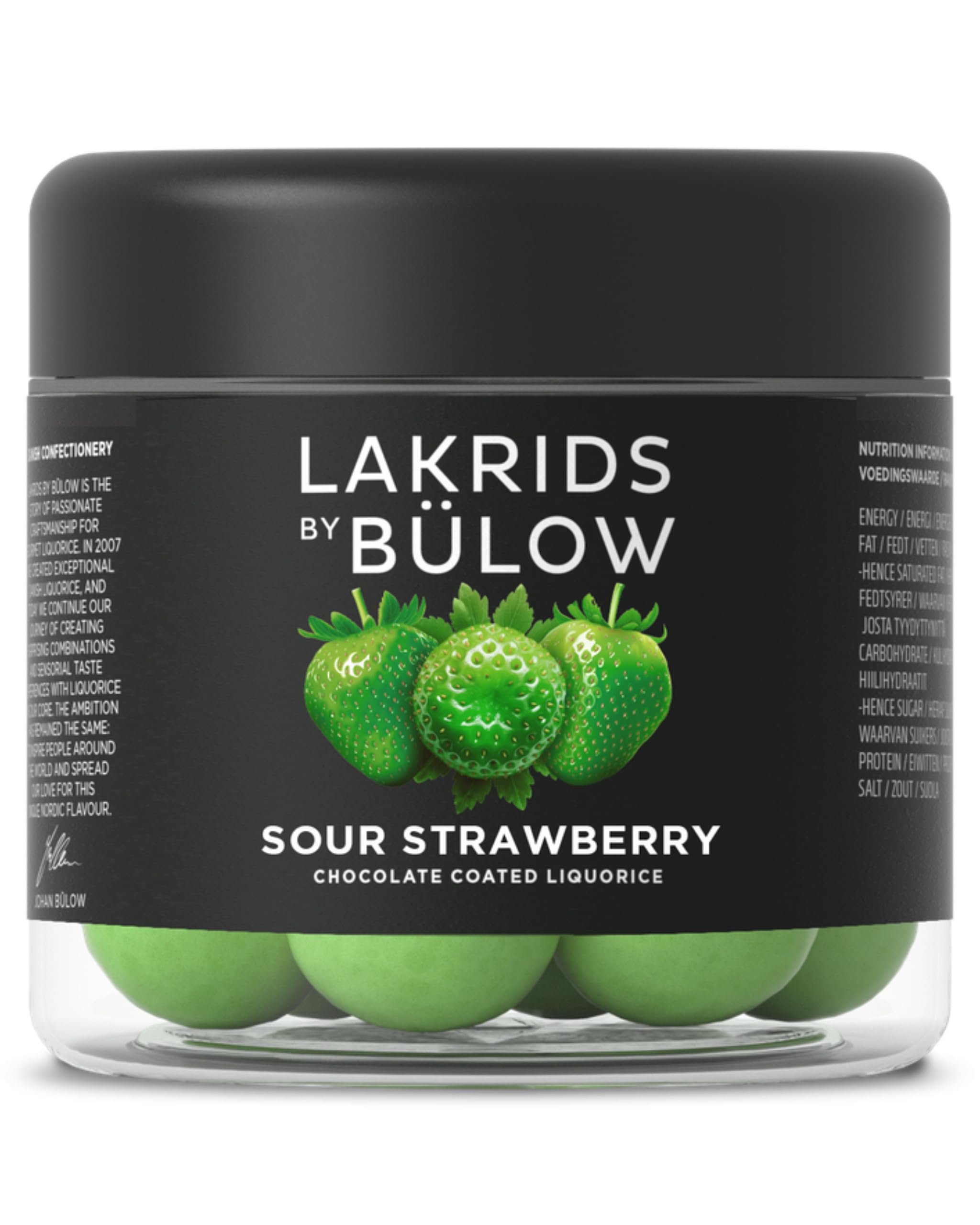UNSERE MISSION - Wir begeistern die Welt für Lakritze!. GLUTENFREI OHNE GELATINE - Wir kochen unsere Lakritze mit Reismehl und verwenden keine Gelatine. Damit ist sie zu 100 glutenfrei und kann von allen unbeschränkt vernascht werden. VERANTWORTUNGSVOLL PRODUZIERT - Wir kochen die Lakritze in unserer Fabrik in Kopenhagen, wo 100 des Energieverbrauchs durch Windenergie gedeckt wird. HERGESTELLT IN DÄNEMARK - Wir beziehen alle unsere Zutaten von den besten Lieferanten aus Dänemark und der ganzen Welt. SOUR STRAWBERRY - Rote Lakritze überzogen mit weißer Schokolade und einer knusprigen Zuckerhülle .