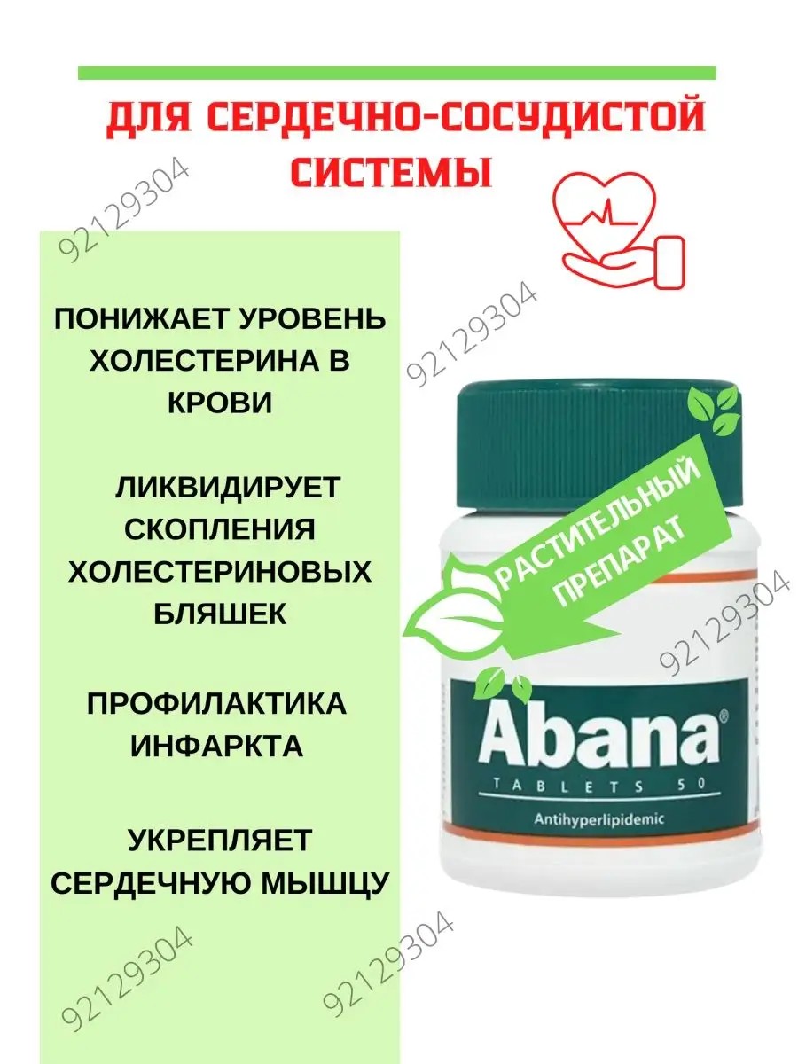 Абана эффективный кардиопротектор растительного происхождения, состоящий из 40 натуральных ингредиентов. Препарат оказывает положительное воздействие на работу сердечно-сосудистой системы. При регулярном приеме он нормализует высокое артериальное давление, очищает кровь, оказывает благоприятное воздействие на сердечную мышцу, снимает чрезмерную эмоциональную чувствительность, отрицательно сказывающуюся на работе сердца. Способствует быстрому расщеплению жиров в организме, даёт энергию и поддерживает организм в тонусе. Препарат способствует регуляции уровня липидов, нормализации работы сердца, снижению холестерина и очищению кровеносных сосудов. Он отлично подходит в качестве профилактического средства для больных с высоким уровнем фактора риска сердечно-сосудистых заболеваний. Продукт не содержит сахара, желатина, искусственных красителей и ароматизаторов. Подходит для использования вегетарианцами. Не является лекарством и не заменяет традиционного лечения.
