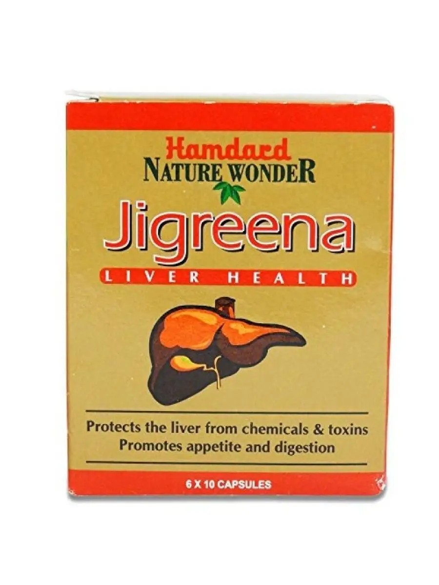 Package contentsJigreena Liver Health Liver cleansing 60 capsules; Jigreena Hamdard 6 blisters of 10 capsules in branded packaging; Jigren for the liver 60 capsules Hamdard