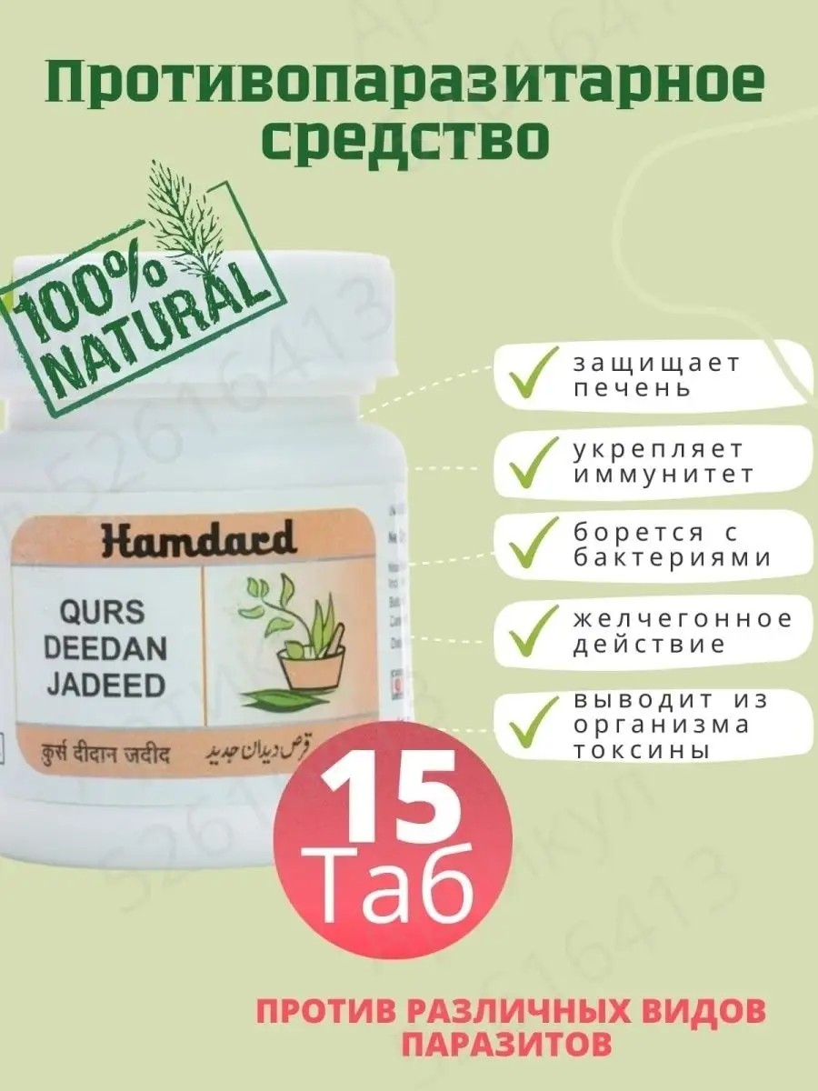 | Комплектация | Курс Дидан на выбор 1 или 2 баночки по 15 таб. или Набор Qurs Deedan+Triphala Maharishi; Qurs Deedan Hamdard 15 или 30 таб. противопаразитарное или комплект Qurs Deedan+Triphala; Курс Дидан от Hamdard от паразитов 1 или 2 баночки по 15 таб. или комплект Qurs Deedan +Triphala |