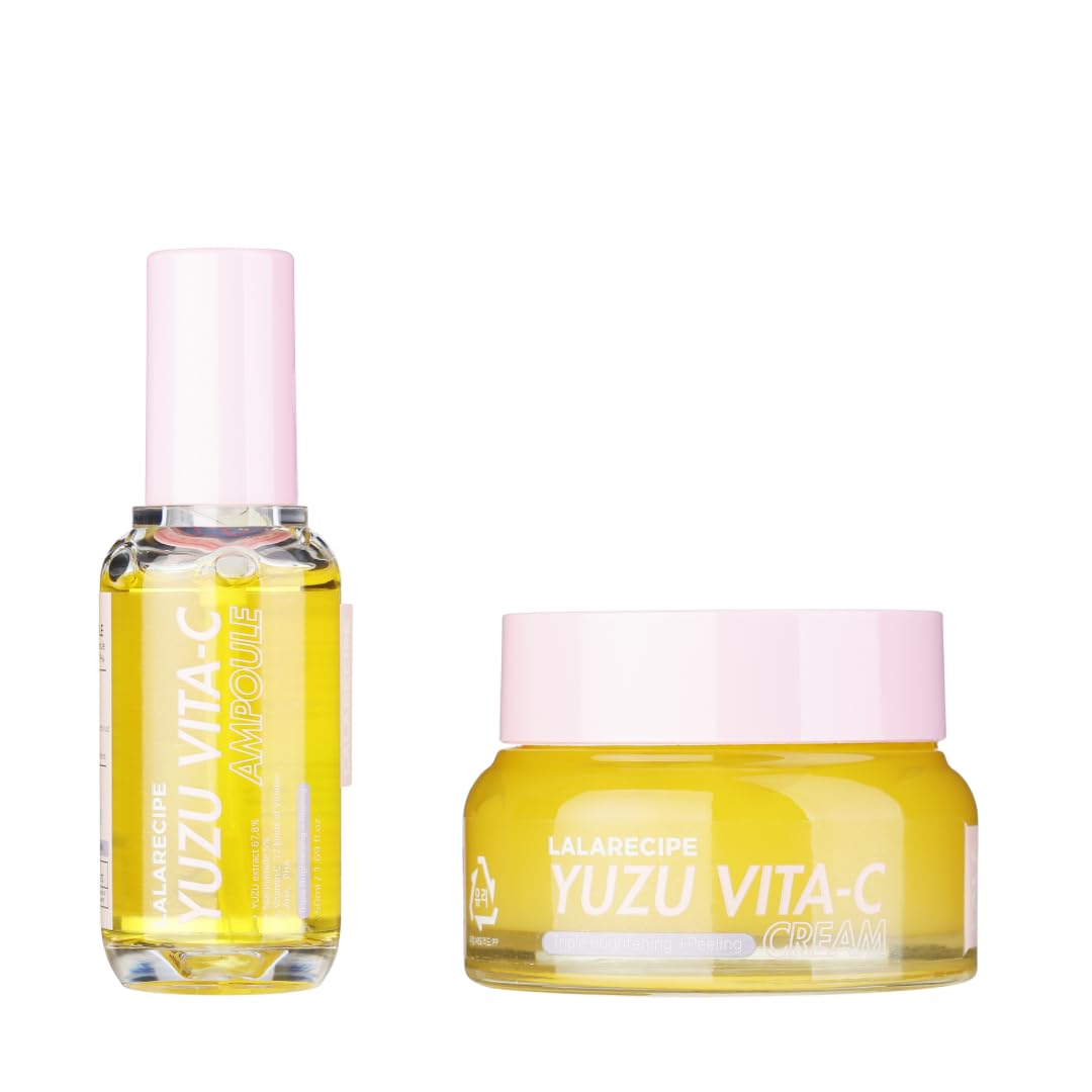 Elevate your skincare routine with the LALARECIPE Niacinamide 5 Vitamin C Skincare Duo, designed to promote a brighter and more hydrated complexion. This set includes: - Yuzu Vita C Facial Ampoule – A concentrated serum with 5 Niacinamide and Vitamin C to enhance skin radiance and improve texture. - Yuzu Vita C Face Cream – A lightweight moisturizer that replenishes hydration and supports a smooth and even-looking skin tone. Perfect for those seeking a glow-boosting skincare routine with a refreshing, lightweight finish.