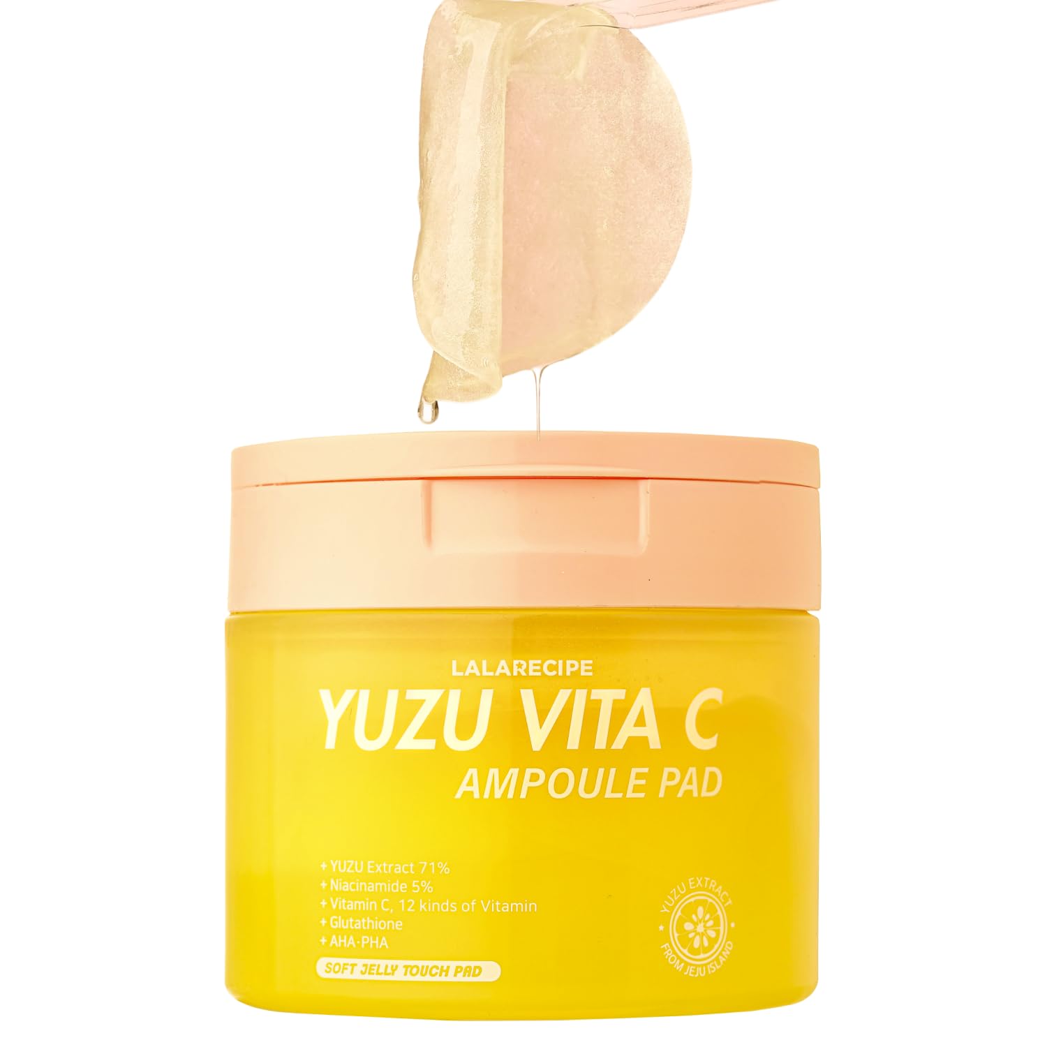 LALARECIPE Yuzu Vitamin C Toner Pads 71% Yuzu Extract with 5% Niacinamide & 12 Vitamins Exfoliating with Glutathione AHA PHA For All Skin Types Korean Skin Care 80 Pads (5.07 Fl Oz)