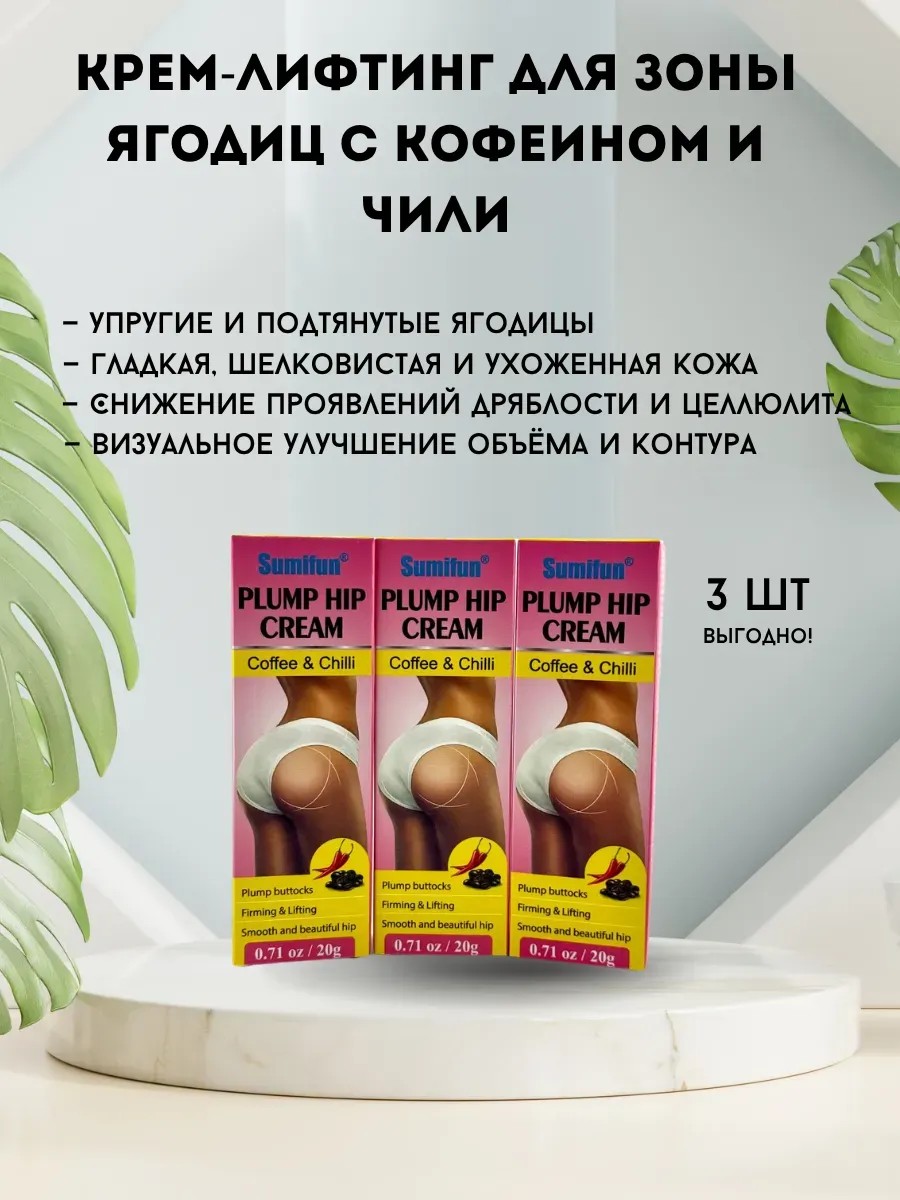 This buttock cream with active natural ingredients is a modern skin care product for this delicate area. Its formula is specifically designed to improve firmness, lift, and visually enhance the contours of the buttocks. Regular use of the cream results in more elastic, even, and smooth skin, while reducing the appearance of cellulite and sagging. The key active ingredients stimulate circulation, accelerate metabolism, and nourish and moisturize the skin. The cream is quickly absorbed, leaves no stickiness, and is suitable for all skin types. Using the cream allows for a pronounced cosmetic effect: the skin becomes denser, firmer, and more well-groomed. This product is indispensable for women who want to enhance their figure and improve their shape without surgery or injections. This buttock lifting cream is suitable for daily use and can be used in combination with massage or exercise. It improves microcirculation, activates natural collagen production, improves tissue tone, and visually reshapes the buttocks. Suitable for all ages, it does not contain any harsh ingredients. The cream is recommended for application to cleansed skin twice daily: morning and evening, massaging in with circular motions until completely absorbed. With regular use, skin density, hydration, and elasticity are improved. This product is widely used at home as an alternative to expensive salon treatments. It requires no special preparation or equipment, has a cumulative effect, and provides visible results after just 2-3 weeks of use. This firming and lifting cream for the buttocks is ideal for women seeking a well-groomed appearance and self-confidence. It complements all skincare regimens, has a comfortable texture, and a pleasant scent. It is paraben- and silicone-free, spreads easily, and is economical to use. The convenient packaging allows for use both at home and on the go. This buttock contouring cream is also recommended after significant weight loss or during the recovery period. Regular use helps prevent sagging skin and restores its tone and smoothness. Thanks to its active ingredients, skin appears smoother, firmer, and more youthful. This product is recommended for women who care about their appearance, as well as those who want to improve the appearance of their buttocks without effort or investment. This cream is an excellent addition to your body care routine, helping you maintain beauty and self-confidence year-round. It's a versatile product for maintaining shape and firming the skin in problem areas. Suitable for use at any time of day, it doesn't require special storage conditions, and is easy to apply. It's an excellent choice for those who care about themselves and their bodies. This buttock cream is an effective way to enhance your attractiveness and well-groomed appearance without harming your skin and with the pleasure of using it.