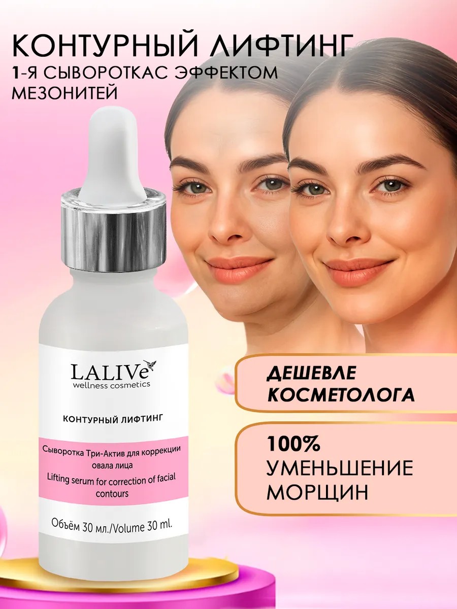 Салонный уход за лицом 3в1 и подтяжка лица дома? Легко! Лифтинг крем - сыворотка для лица от морщин с пептидами и коллагеном «Контурный Лифтинг» от Лалив — это антивозрастной филлер и бустер Вашей сияющей молодости, радующей каждый день! Стойкий лифтинг-эффект и устранение признаков старения с помощью трио активных компонентов: SI-Matrix, Коллаген и Гидрованс. Комплекс Si-Matrix дает выраженный подтягивающий эффект, уменьшает размер брылей. КОЛЛАГЕН и масло МАКАДАМИИ моделируют контуры овала лица. АЛЛАНТОИН уменьшает межбровные и носогубные складки, подходит от морщин на лбу. Омолаживающая сыворотка с витамином C и Е глубоко питает и создаёт уход за кожей лица на клеточном уровне. Комплекс ГИДРОВАНС активно увлажняет, сглаживает дряблость и морщины. Кожа упругая и гладкая сияет здоровьем и свежестью. Уходовая косметика для лица «Контурный Лифтинг» - видимая подтяжка с эффектом мезонитей без ботокс уколов и боли! Легкая текстура: быстро впитывается и подходит как основа под макияж. Экономичный: 30 мл хватит на курс. Для всех типов кожи. Особенно хорош как botox уход для лица за возрастной, сухой и чувствительной. Красивая упаковка: прекрасный подарок для себя, маме, подружке, коллеге, свекрови. Как дополнение в подарочный набор косметики. Создан в России с использованием только натуральных ингредиентов. Качество состава на уровне европейской или корейской косметики. Применение: на очищенную кожу лица утром и вечером перед использованием основного крема, эмульсии или эссенции. Курс 30-45 дней. Подходит для применения вместе с: гуаша, тейпы, микротоки, дарсонваль. Для омолаживающей коррекции применять после: rf рф ( smas смас ) лифтинг, карбокситерапия, мезороллер. Для зрелой, увядающей кожи 30+ 35+ 40+ 45+ 50+ 55+ 60+. Для беременных, кормящих, до и после родов, для женщин и мужчин, как дневной и ночной уход. LALIVe - российская косметика, сделанная по ГОСТ. Мы прямой производитель - поставщик на Wildberries. Только оригинальный товар и сертификаты качества.