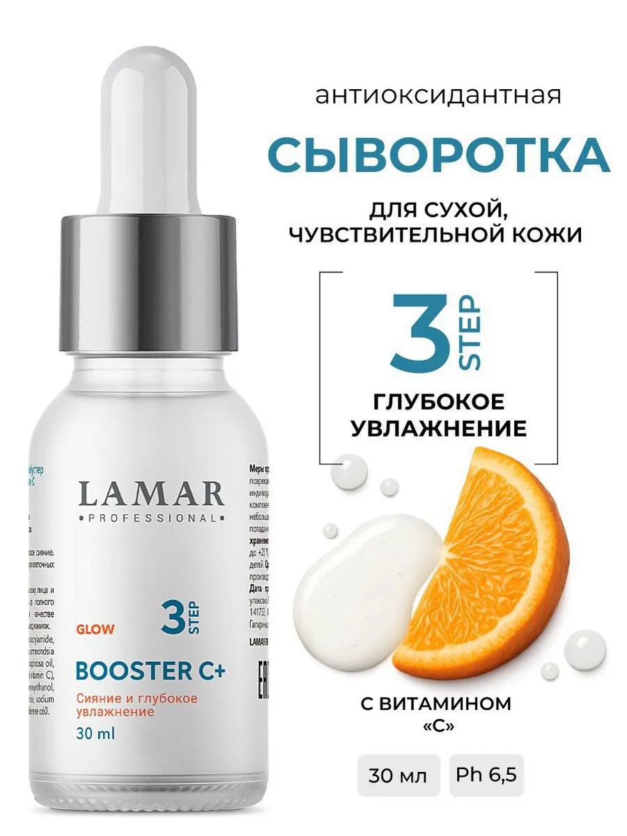 Антиоксидантная сыворотка-бустер с ниацинамидом и витамином С BOOSTER C+, 30 мл дарит коже здоровое сияние и омоложение. Это отличное средство для женщин, мужчин, подростков. Оно подходит и для жирной, сухой, чувствительной кожи. Входящие в состав активные компоненты, такие как масла арганы и жожоба, Д-пантенол и витамин С заряжают кожу энергией, обновляют её. Средство помогает уменьшить проявления акне, пигментации, фотоповреждений. Этот продукт разработан с целью улучшения состояния кожи лица. Сыворотка бьюти филлер дает мгновенное увлажнение и обладает антивозрастным эффектом. Мощный активатор внутриклеточных процессов способствует синтезу коллагена и эластина. Гиалуроновая кислота насыщает клетки влагой, предотвращая преждевременное старение. Косметика также защищает от вредного воздействия окружающей среды и УФ-излучений. Её формула направлена на борьбу с оксидативным стрессом, ускоряет восстановление после стрессов и улучшает плотность тканей кожи. Против воспалений помогает ниацинамид; гликолевая кислота способствует легкому очищению пор. Лечение прыщей становится простым благодаря этому профессиональному премиум уходу. Сыворотка укрепляет кожу вокруг глаз, смягчает морщины и предотвращает появление новых несовершенств. Она идеально дополняет любой уход за кожей – будь то ежедневное умывание или более сложные процедуры ухода в салоне. Используйте её как праймер перед нанесением декоративной косметики или как ночной уход для восстановления кожных покровов во время сна. Легкий гель быстро впитывается, не оставляя блеска. Это натуральная косметика поможет снизить выраженность комедонов и быстро восстановит кожу после чистки или агрессивных процедур. Средство подходит для чувствительной кожи взрослых женщин и девушек. Кроме того, флюид оказывает выравнивающий эффект на поверхность лица, делая его более гладким на ощупь благодаря аминокислотам в составе. Продукт отлично справляется с задачей снижения уровня пигментации кожи головы и тела.