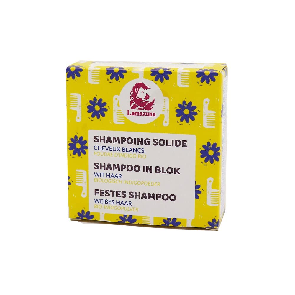 Lamazuna Sulfate-Free Solid Shampoo with Organic Indigo Powder Lamazuna solid shampoo with organic indigo powder is sulfate-free and has been specially developed for white and gray hair. Various ingredients, including indigo powder, ensure an anti-yellowing effect. The shampoo gently cleanses and leaves your hair soft and shiny. This vegan shampoo is handmade and free of sulfates, plastic, and palm oil. As it contains essential oils, it is not suitable for pregnant or breastfeeding women. How to Use: Lather the Lamazuna solid shampoo in the shower, distribute the lather through wet hair, wash your hair as usual, then rinse thoroughly with water. Avoid contact with eyes. Tip: Allow the solid shampoo to dry completely after use to maximize its effectiveness. INGREDIENTS Sodium COCOYL ISETHIONATE, RICINUS COMMUNIS SEED OIL , STEARIC ACID, PAMITIC ACID, KAOLIN, TRITICUM VULGARE GERM OIL , HELIANTHUS ANNUUS SEED OIL , COCO-GLUCOSIDE, LAVANDULA HYBRIDA GROSSO HERB OIL , YMUS ZYY. GIS FLOWER OIL , CITRUS RETICULATA PEEL OIL , CHAMOMILLA RECUTITA FLOWER EXTRACT , POLYGONUM TINCTORIUM LEAF EXTRACT , AQUA, TOCOPHEROL, LIMONENE, LINALOOL. Ingredients from controlled organic farming (24.8 ) ingredients of natural origin (94.4 )✓ Certified natural cosmetics: Cosmos Organic certified natural cosmetics. According to the Slow Cosmetics principle. Handmade in France with lots of love. ✓ Compelling features: Lamazuna's solid shampoo is vegan, free of sulfates, palm oil, and microplastics. It contains organic indigo powder, which provides an anti-yellowing effect. ✓ APPLICATION: Lather the solid shampoo in the shower and distribute the lather through wet hair. Wash hair as usual and rinse thoroughly with water. ✓ NATURAL INGREDIENTS: The shampoo contains many precious ingredients that nourish your hair during cleansing and ensure a healthy shine. ✓ PERFECT CLEANSING: The solid shampoo with organic indigo powder is ideal for cleansing white and gray hair. The shampoo cleanses deeply while being very gentle on the skin and hair.Lamazuna Shampooing solide Sans sulfate aux huiles essentielles Avec poudre d'indigo bio Pour cheveux blancs et gris Effet anti-jaunissement Fabriqué à la main en France 70 mlDESCRIPTION DU PRODUIT DESCRIPTION DU PRODUIT Lamazuna Shampooing solide sans sulfate avec poudre d'indigo bio Le shampooing solide Lamazuna à la poudre d'indigo bio est sans sulfate et a été spécialement développé pour les cheveux blancs et gris. Divers ingrédients, y compris la poudre d'indigo, assurent un effet anti-jaunissement. Le shampooing nettoie en douceur et donne à vos cheveux souplesse et brillance. Le shampooing végétalien est fabriqué à la main et exempt de sulfate, de plastique, d'huile de palme. Comme il contient des huiles essentielles, il ne convient pas aux femmes enceintes et allaitantes. Utilisation : Faire mousser le shampooing solide Lamazuna sous la douche, répartir la mousse sur les cheveux mouillés, laver les cheveux comme d'habitude, puis rincer abondamment à l'eau. Éviter le contact avec les yeux. Conseil : Laissez le shampooing solide bien sécher après utilisation pour augmenter son rendement. INGRÉDIENTS Sodium COCOYL ISETHIONATE, RICINUS COMMUNIS SEED OIL , STEARIC ACID, PAMITIC ACID, KAOLIN, TRITICUM VULGARE GERM OIL , HELIANTHUS ANNUUS SEED OIL , COCO-GLUCOSIDE, LAVANDULA HYBRIDA GROSSO HERB OILTH , YMUS ZYY. GIS FLOWER OIL , CITRUS RETICULATA PEEL OIL , CHAMOMILLA RECUTITA FLOWER EXTRACT , POLYGONUM TINCTORIUM LEAF EXTRACT , AQUA, TOCOPHEROL, LIMONENE, LINALOOL. Ingrédients issus de l'agriculture biologique contrôlée (24,8 ) ingrédients d'origine naturelle (94,4 )✓ Cosmétiques naturels certifiés : cosmétiques naturels certifiés Cosmos Organic. Selon le principe Slow Cosmetic. Fabriqué à la main en France avec beaucoup d'amour. ✓ Caractéristiques convaincantes : le shampooing solide de Lamazuna est végétalien, exempt de sulfates, d'huile de palme et de microplastiques. Il contient de la poudre d'indigo bio qui assure un effet anti-jaunissement. ✓ APPLICATION: Faire mousser le shampooing solide sous la douche et répartir la mousse sur les cheveux mouillés. Lavez les cheveux comme d'habitude et rincez abondamment à l'eau. ✓ INGRÉDIENTS NATURELS : le shampooing contient de nombreux ingrédients précieux qui nourrissent vos cheveux pendant le nettoyage et assurent une brillance saine. ✓ NETTOYAGE PARFAIT : le shampooing solide à la poudre d'indigo bio est idéal pour le nettoyage des cheveux blancs et gris. Le shampooing nettoie en profondeur tout en étant très doux pour la peau et les cheveux.