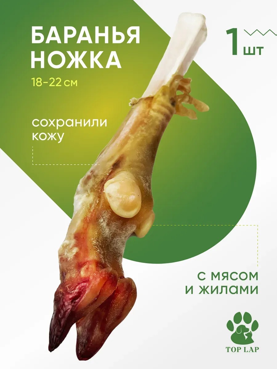 Калорийность/Б/Ж/У (на 100 гр) - 341/58,9/11,7/0 ! Когда собака съест кожу, мясо и жилы - голую кость необходимо забрать, она непригодна для поедания. Сушеная баранья ножка - натуральное и вкусное лакомство для собак' Сушеная баранья ножка - это идеальное лакомство для вашего питомца, которое сочетает в себе великолепный вкус и полезные свойства. Сделанное из качественного бараньего мяса и сушенное с заботой о здоровье, это угощение порадует вашего питомца и подарит ему радость каждый раз. Преимущества сушеной бараньей ножки для собак: Поддержка здоровья зубов и десен: Жевание сушеной бараньей ножки помогает удалять зубной налет и массировать десны, способствуя здоровью полости рта вашего питомца. Полезное развлечение: Прочная структура бараньей ножки предоставляет вашей собаке долгоиграющее развлечение, что особенно ценно для питомцев, склонных к скучности или разрушительному поведению. Натуральное и безопасное: Наша сушеная баранья ножка не содержит искусственных добавок, красителей или консервантов, что делает ее безопасной и здоровой закуской для собаки. Подходит для всех пород: Сушеная баранья ножка идеально подходит для собак всех возрастов и размеров, принося им удовольствие и радость от каждого прежеванного кусочка. Обогащение рациона: Добавление сушеной бараньей ножки в рацион собаки обогатит ее питание и разнообразит ее дневной рацион. Здоровая кожа и шерсть: Баранья ножка содержит ценные жирные кислоты Омега-3 и Омега-6, которые способствуют здоровой коже и блестящей шерсти у вашего питомца. Улучшение пищеварения: Сушеная баранья ножка обогащена клетчаткой, которая поддерживает здоровое пищеварение и регулярность кишечника. Укрепление иммунной системы: В составе бараньей ножки содержатся витамин А, витамин Е и антиоксиданты, которые укрепляют иммунную систему собаки и помогают ей бороться с инфекциями. Здоровье суставов: Натуральные суставы в бараньей ножке способствуют поддержанию здоровья суставов и подвижности у вашего питомца.
