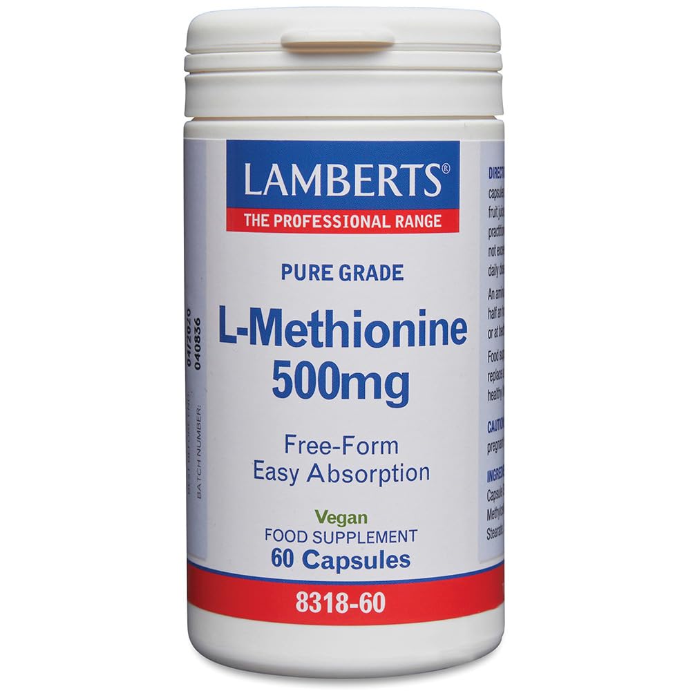 Lamberts LMETIONINA 500 mg 60 caps is a comprehensive supplement offered in convenient capsule form 60 units Paquete de 1