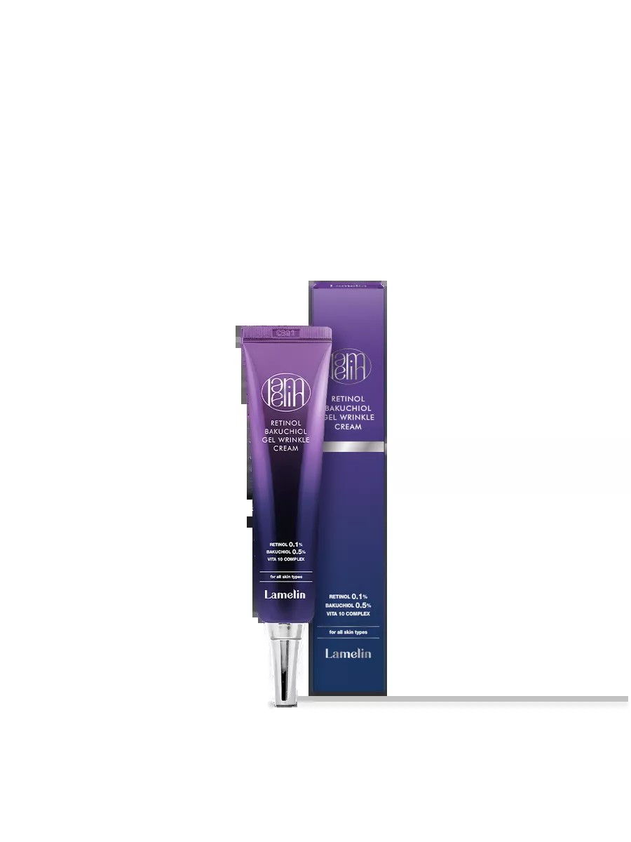 Антивозрастной крем-гель Lamelin Антивозрастной крем-гель с ретинолом и бакучиолом Retinol Bakuchiol Gel Wrinkle Cream 30 мл с ретинолом и бакучиолом интенсивно увлажняет и питает кожу, уменьшает глубину морщин, активизирует ускоренную регенерацию клеток, способствует улучшению тона и текстуры кожи, осветляя нежелательную пигментацию и избавляя от неровностей рельефа.