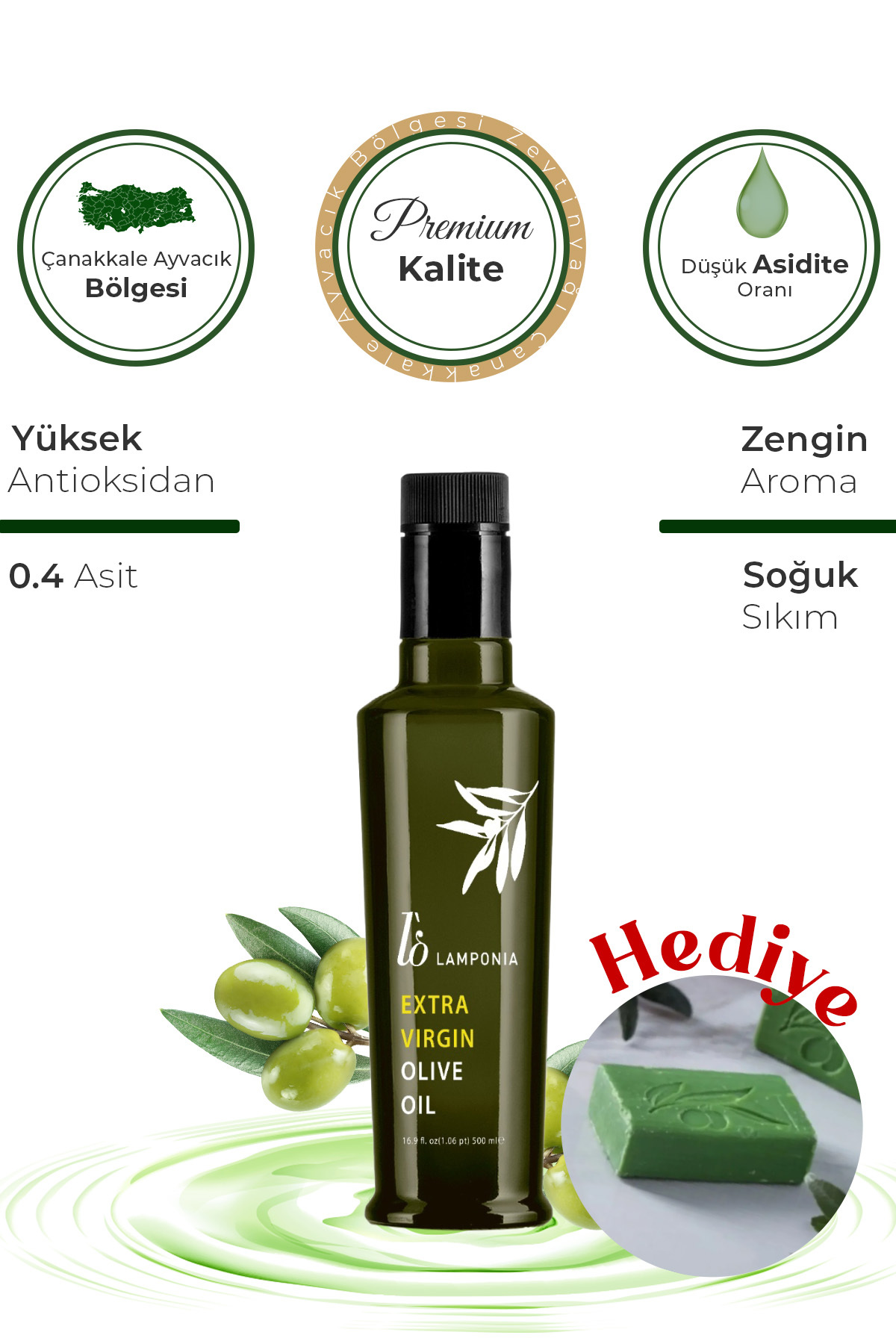 Lamponia 500 ml Extra Virgin Olive Oil 0.4 Acid Glass Bottle Olive Oil