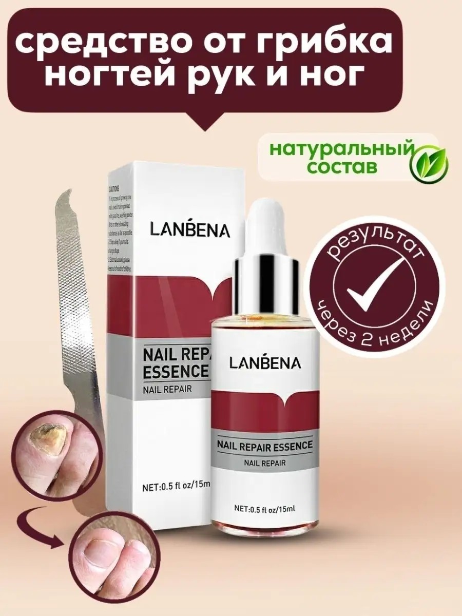 LANBENA Nail Repair Essence is designed to treat and prevent nail disease, specifically fungus (onychomycosis). Nail fungus is not just a cosmetic defect but also a serious condition that must be addressed as soon as possible, so this serum can be used for both treatment and prevention. Apply 1 drop twice daily (morning and evening) to all nails, even healthy ones. Cleanse the skin first, preferably steamed. File the top layer of the nail every 2-3 days to allow the product to penetrate deeper into the nail plate.