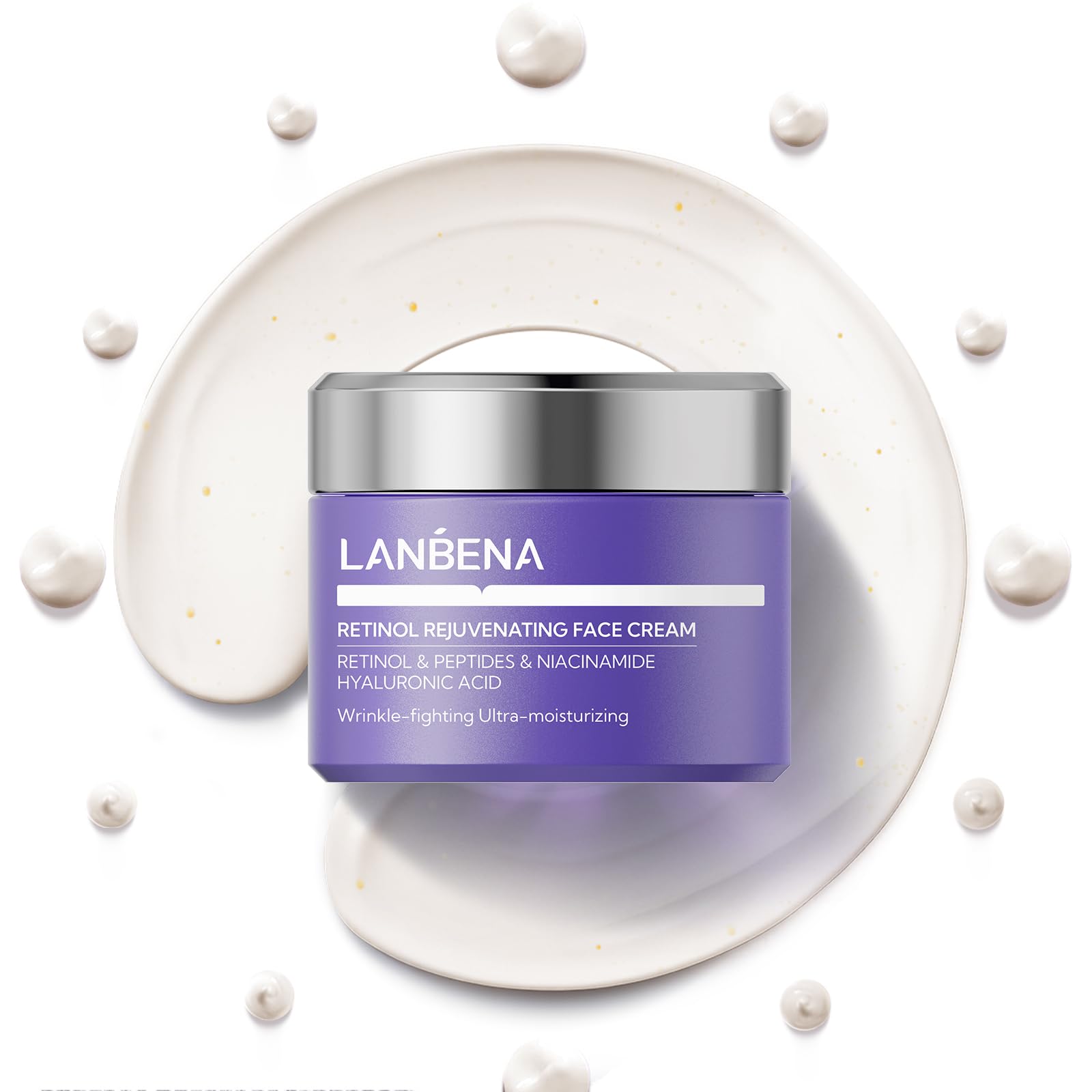 Lanbena Retinol Rejuvenating Face Cream 30g - Face Moisturizer with Brightening Anti-Aging Effects, Hydrating Formula for All Skin Tones, 1 Fl OzGENTLE TRUSTED FORMULA: Free from synthetic fragrances, parabens, and harsh additives, this cream is crafted with skin-friendly ingredients. It's designed to nourish without irritation, ensuring a safe and effective addition to your daily skincare routine for healthier-looking skin. LIGHTWEIGHT VERSATILE FOR DAILY USE: The lightweight texture absorbs quickly without greess, making it ideal for daily morning or night use. It layers seamlessly with other skincare products and is suitable for all skin types, including sensitive, dry, or combination skin. TARGETS MULTIPLE SKIN CONCERNS: More than a basic moisturizer, this cream addresses key concerns—dullness, dark spots, uneven texture, and early signs of aging—all in one formula. It works to enhance radiance, smoothness, and overall skin health, leaving you with a luminous, refreshed glow. DEEP HYDRATION WITH SKIN-LOVING INGREDIENTS: Infused with hydrating ingredients like hyaluronic acid (and botanical extracts), this cream locks in moisture, plumps dry areas, and strengthens the skin barrier. It delivers long-lasting hydration to keep skin soft, supple, and revitalized throughout the day. BRIGHTENING ANTI-AGING Retinol Rejuvenating FORMULA: LANBENA Retinol Rejuvenating Face Cream is powered by Retinol Rejuvenating to visibly brighten dull skin, fade dark spots, and even out uneven tone. It supports collagen production to reduce the look of fine lines and wrinkles, promoting a smoother, firmer, and more youthful complexion.