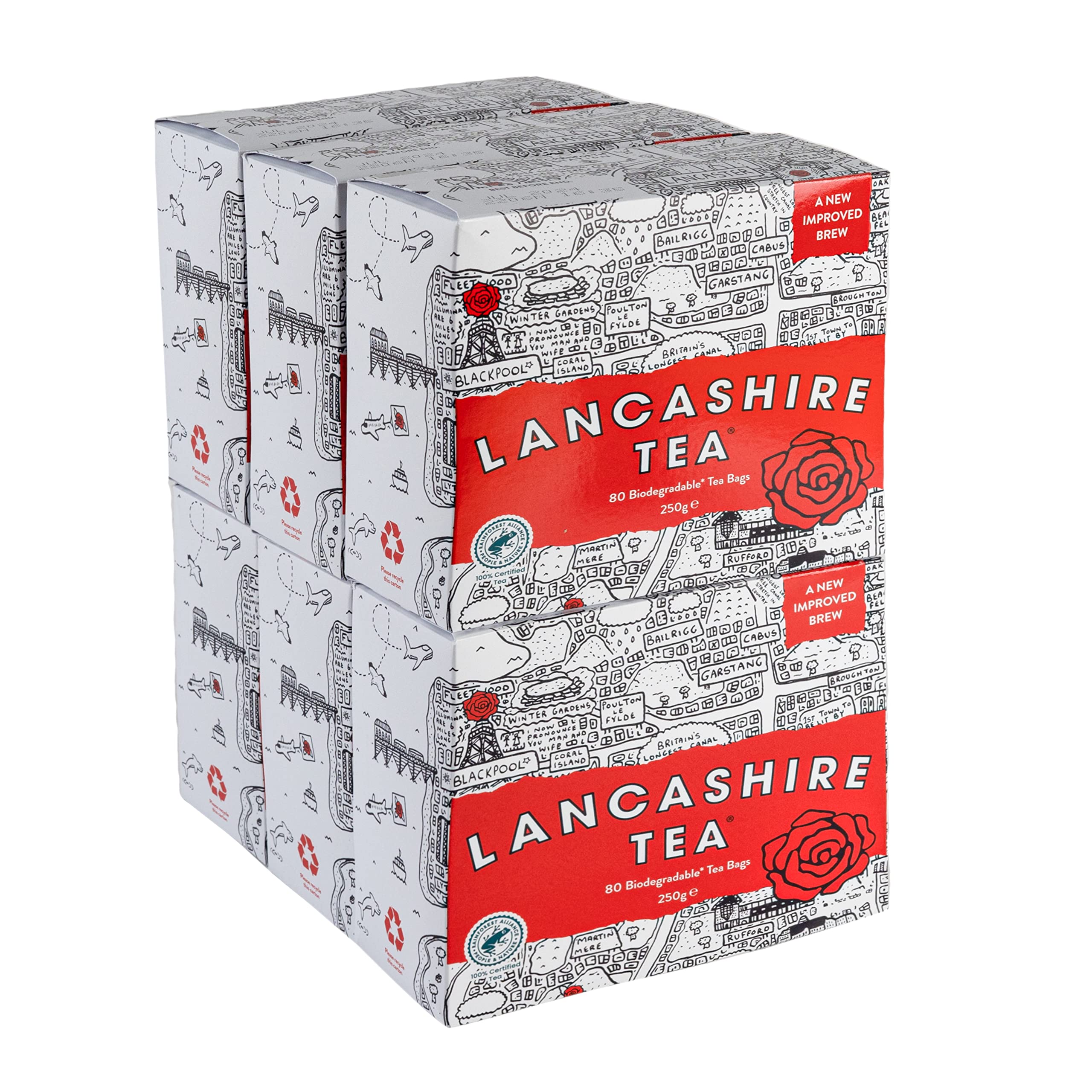 Lancashire Tea Lot de 6 x 80 sachets de th (480 sachets biod gradables en vrac noir) pour la restauration le partage les pauses th au bureau Certifi Rainforest Alliance