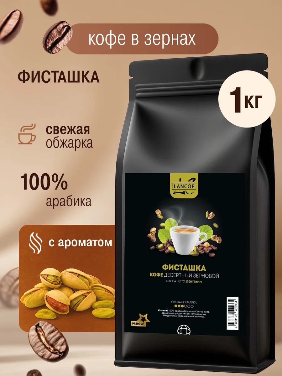 Кофе в зернах 1 кг 100% арабика натуральный ароматизированный со вкусом Фисташка. Упаковка объемом 1000 гр. Откройте для себя богатство вкусовых нот.