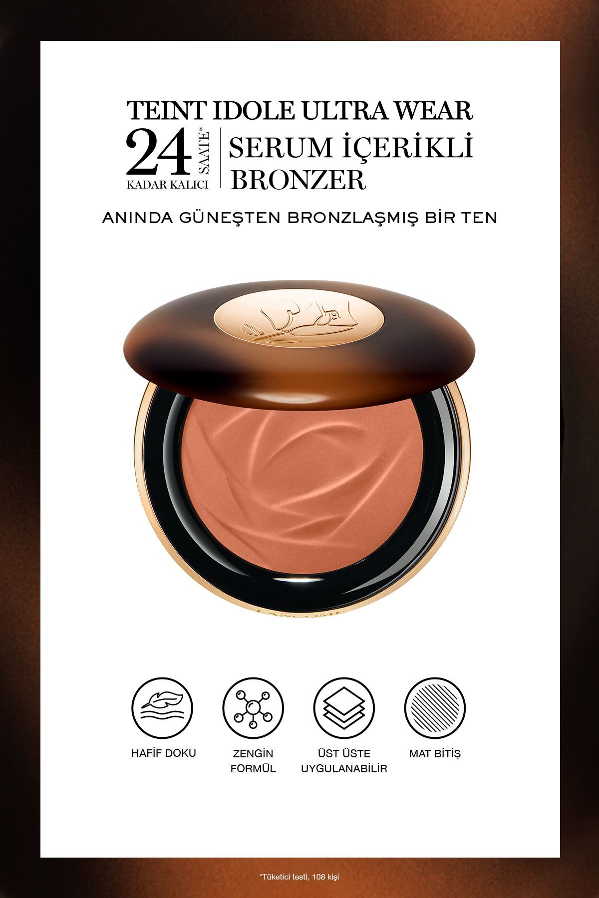 Teint Idole Ultra Wear C.E. SKIN TRANSFORMING BRONZER, teknoloji ve cilt bakiminin mükemmel birlesimi ile 24 saate kadar etkili inovatif bir bronzerdir.