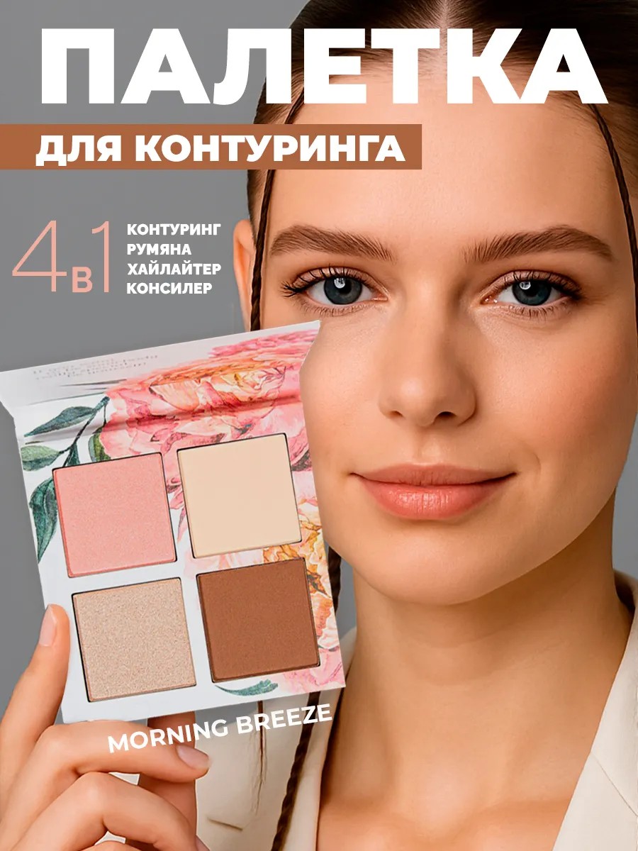 Компактная палетка контуринга для лица Landa Branda. Многофункциональный набор для контурирования лица, состоящий из 4 оттенков: бронзера, румян, пудры и хайлайтера. Каждый из элементов скульптора может наноситься самостоятельно и объединяться с другими. Бронзатор в натуральной цветовой гамме подчеркивает черты лица, оттачивает и делает их изящными. Румяна подчеркивают скулы, придают лицу свежий, юный вид. Сияющий, шиммерный хайлайтер с мелкими блестками, осветляет и наполняет кожу свечением. Пудра эффективно уменьшает жирный блеск, делая кожу гладкой и бархатистой. Удобно использовать в любой ситуации, обеспечивая свежий вид на долгое время. Продукт подходит для разных типов кожи и не сушит ее благодаря сбалансированному составу. Декоративная уходовая косметика для макияжа лица - палетка 4 в 1 предназначена для создания идеального макияжа и проработки черт лица. Макияжный набор для визажиста , относится к недорогой профессиональной и органической косметике. Все текстуры, входящие в косметический набор, легко растушевываются и позволяют создать невероятно эффектный макияж каждый день. Палетка подходит для профессионального и домашнего использования, для вечернего или нюдового дневного макияжа. Сухой контуринг позволит вам легко добиться эффекта скульптурирования и идеального контура лица, а сухой хайлайтер добавит естественное сияние. Матирующая пудра помогает создать естественный и ухоженный образ, сохраняя кожу матовой на протяжении всего дня. Текстура консилера мягкая, легко растушевывается и наслаивается, обеспечивая плавные переходы без резких линий. Мгновенный фотошоп эффект. Универсальная палетка благодаря матовому финишу, скрывает несовершенства и выравнивает тон. Формула разработана так, чтобы компоненты комфортно наносились и держались в течение всего дня. Есть аналоги в китайской и корейской косметике. Станет отличным подарком на день рождение, 8 марта или без повода, дочке, подруге, маме или девушке.