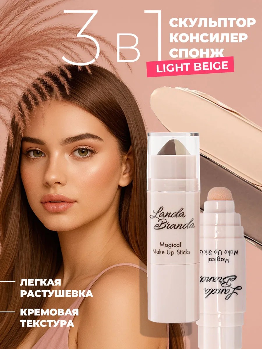 Декоративная уходовая косметика для макияжа лица. Стик представляет собой удобное косметическое средство, объединяющее консилер и скульптор в одном флаконе Landa Branda. Корректор подходит для сухой и возрастной кожи.