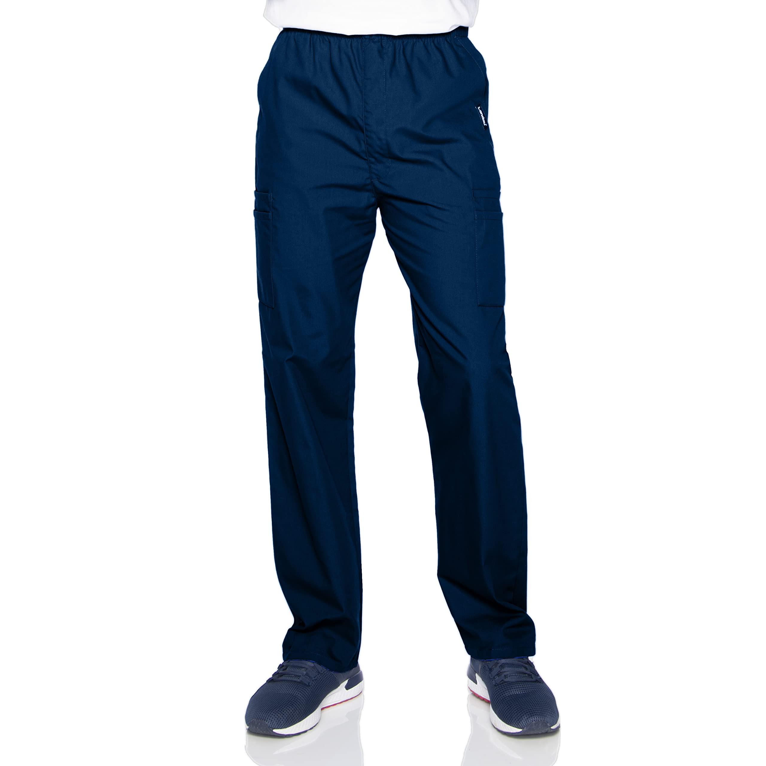 Landau Men's Essentials Relaxed Fit 7-Pocket Elastic Cargo Scrub Pants 8555 Medium Navy