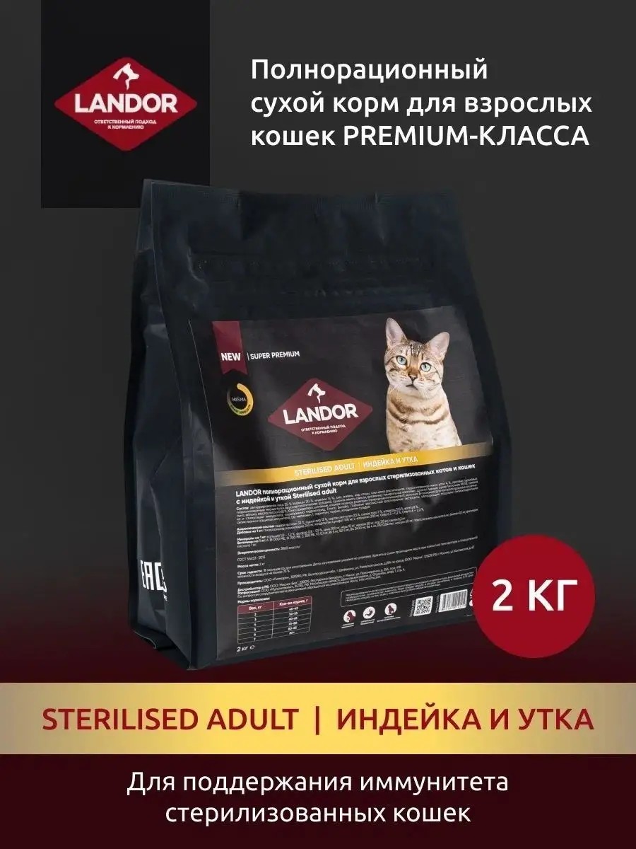 LANDOR Корм Landor для стерилизованных кошек Индейка утка 2 кг