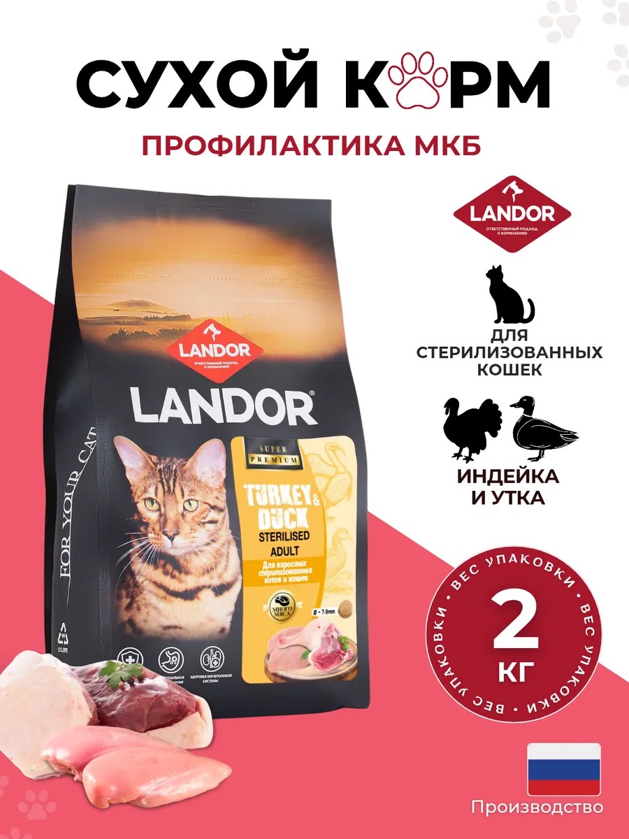 LANDOR Для стерилизованных кошек индейка и утка 2кг