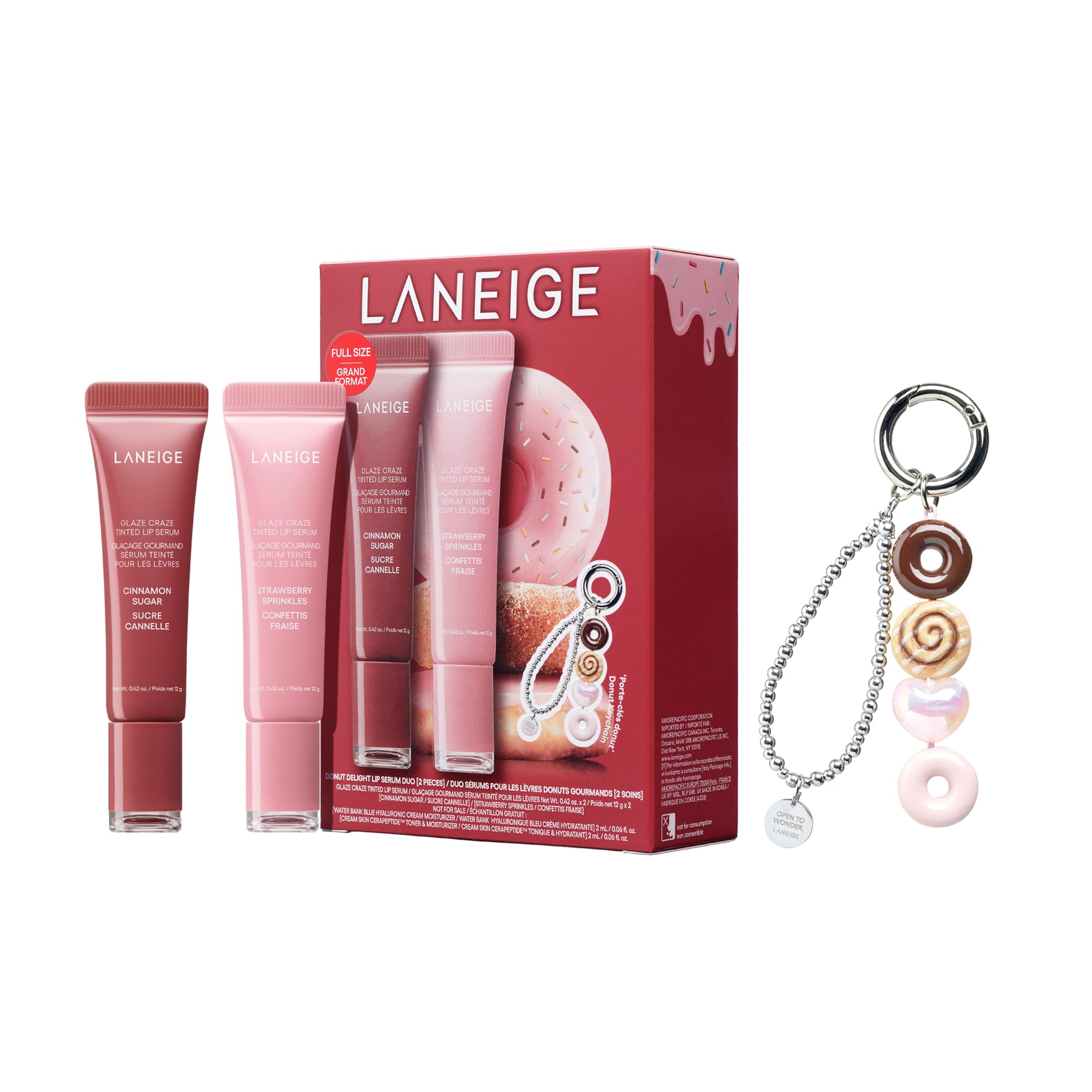 LANEIGE Glaze Craze Donut Delight Lip Serum Duo | Laneige Hydrating Tinted Lip Serums & Donut Keychain | K-Beauty Set for Glossy Plump Lips