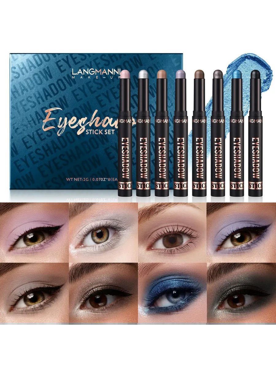 All-in-one eyeshadow set: 8 colors, give you a bright, vibrant eyes, the eyeshadow sticks can effectively highlight the eye contour, create a gorgeous eye makeup and make you attract attention on any occasion. Universal makeup eyeshadow set: 8 color tones for you to choose from, on the skin, creamy, vivid color rendering, the product is long-lasting and waterproof, not easy to crease. It is smooth as silk, no lumps, does not fade, and has a uniform color, which hides the natural look and makes your eyes more charming (Not only eyeshadow, it can also be used as a contour or highlighter)