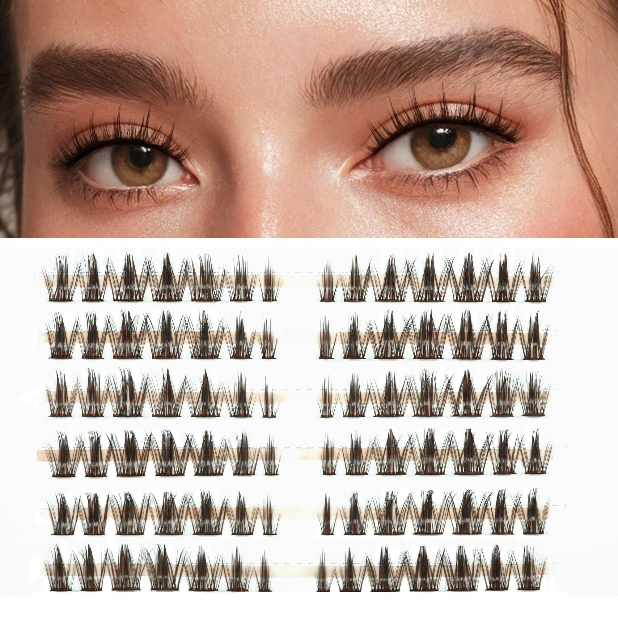 Lankiz manga cluster eyelashes brown individual eyelashes DIY eyelash extensions fake lashes natural eyelash clusters individual lashes manga-style-04 brown